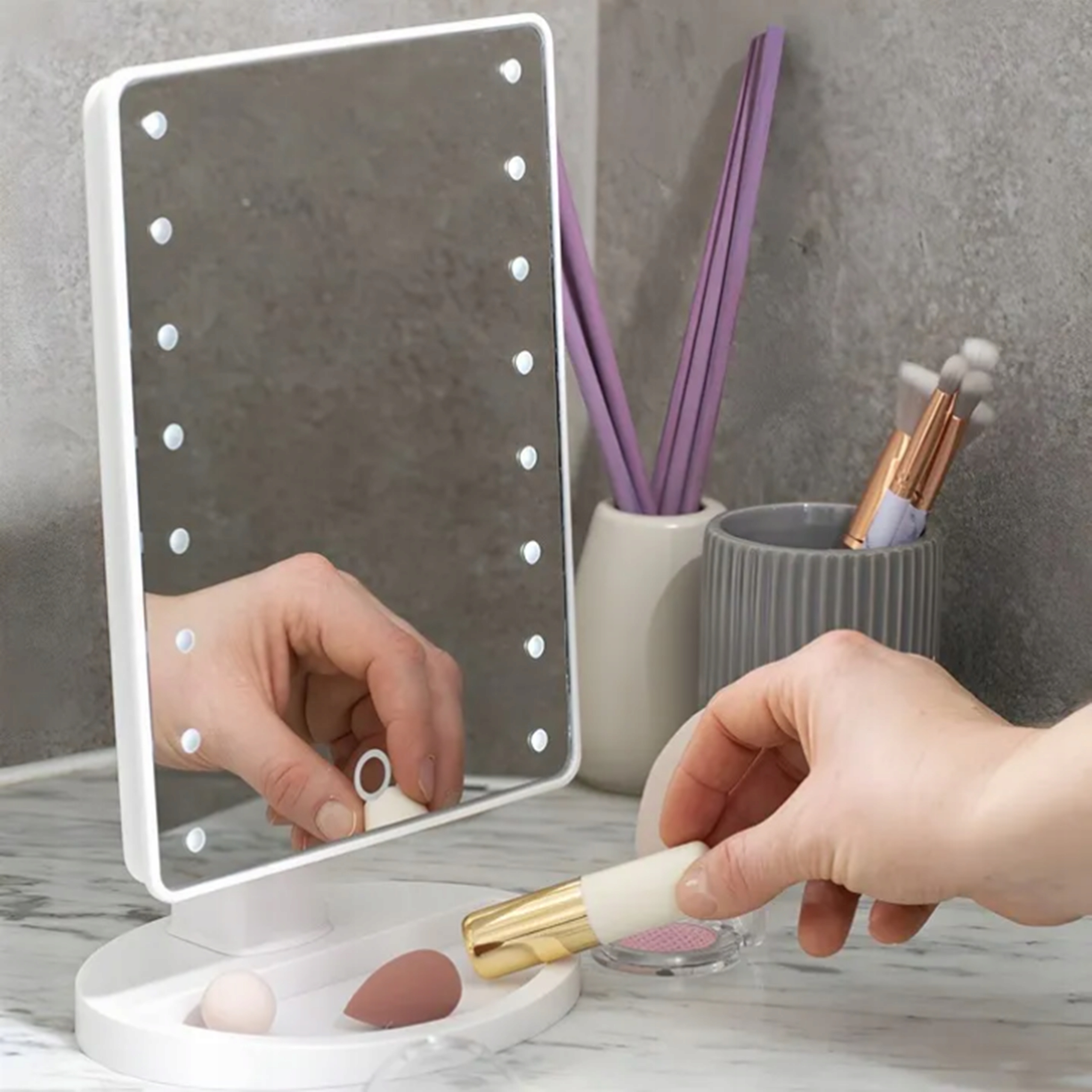 Якщо ви мрієте про ідеальний макіяж у комфорті власного будинку, спальні чи ванної кімнати, у вас повинно бути світлодіодне косметичне дзеркало. Це гаджет, який вам сподобається від першого використання, і ви не захочете розлучатися з ними. виділене світлодіодне дзеркало буде ідеальним для освітлення всього обличчя та шкіри. Освітлене косметичне дзеркало, однак, буде працювати не тільки для макіяжу, але і для інших косметичних та доглядних процедур - за допомогою його застосування маски, налагодження брови, надягання та знімання лінз або створення прекрасного макіяжу.
