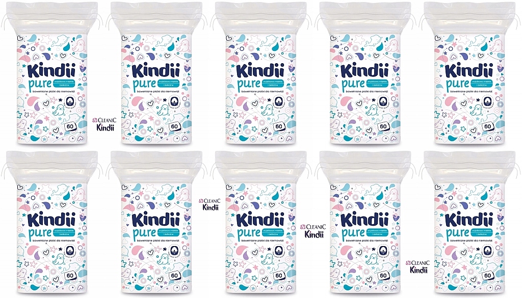 Kindii Pure - великі бавовняні косметичні диски для немовлят 10 х 60 шт.