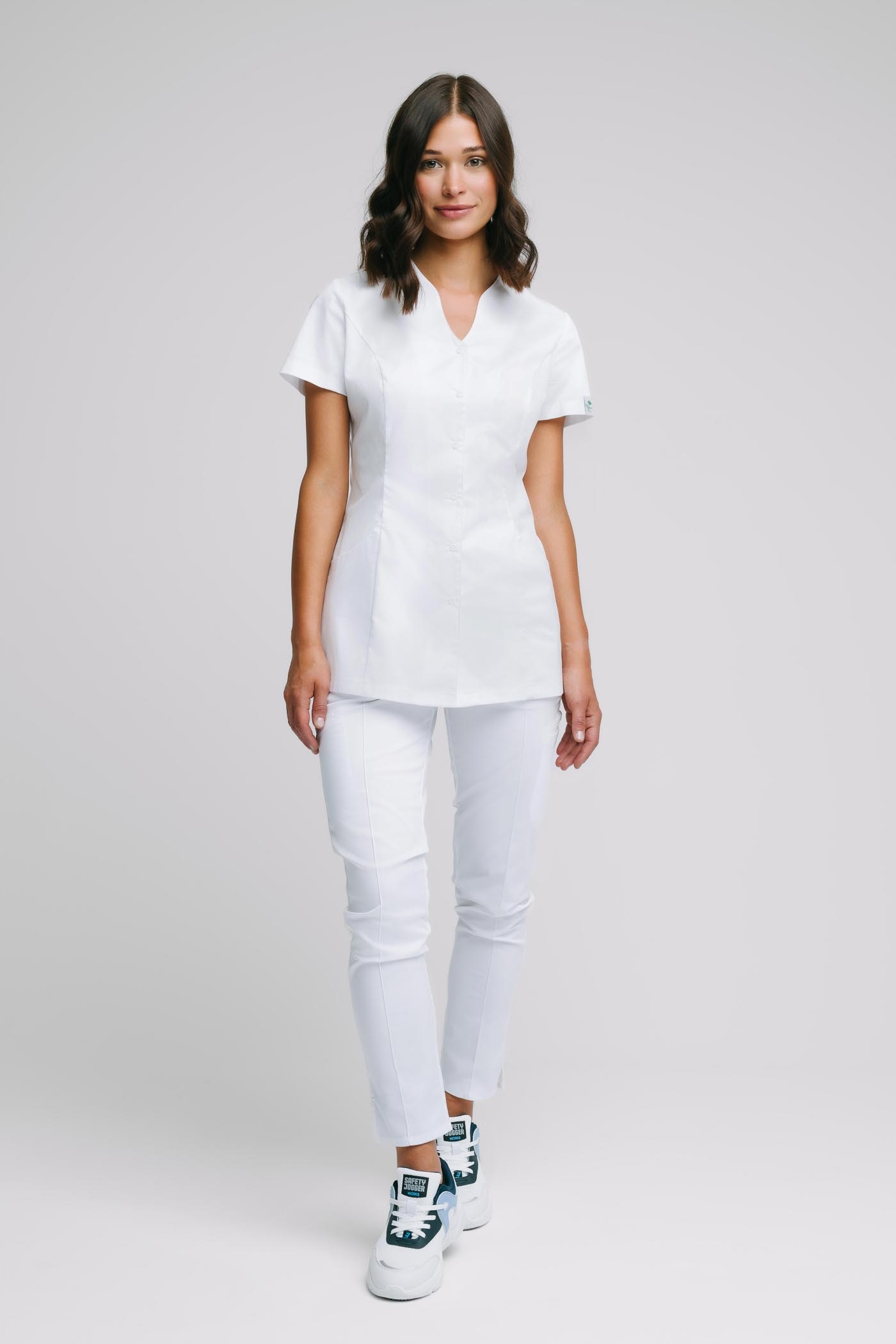 Про продукт: медичний фартух Alicja premium/+ є з гнучким, міцним матеріалом з високим вмістом бавовни. Якщо ви шукаєте фартух, в якому ви будете відчувати себе в скрабах, ви ідеально вдарите. Преміум -версія цієї моделі в першу чергу гнучка, вона має дві великі кишені, декольте в V, кріпиться пресом. Ви можете легко мити фартух у 60 ℃. Гнучкий матеріал медичного фартуха "Alicja" вже використовується в наших медичних скрабах "Lena" та "Sonia", щоб ви могли вибрати відповідні штани.