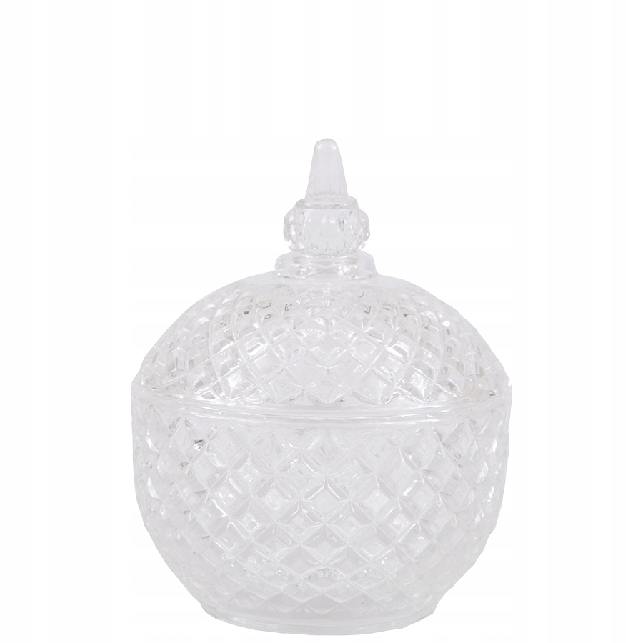 Естетичний і дуже практичний контейнер, який можна використовувати різними способами. Добре підійде як ємність для подачі солодощів або горіхів, але також її можна використовувати як ємність для ватних дисків або косметики. Він також ідеально підходить для зберігання прикрас у вашому гардеробі. Він виготовлений зі скла і має кришку, що закривається, з декоративною ручкою.