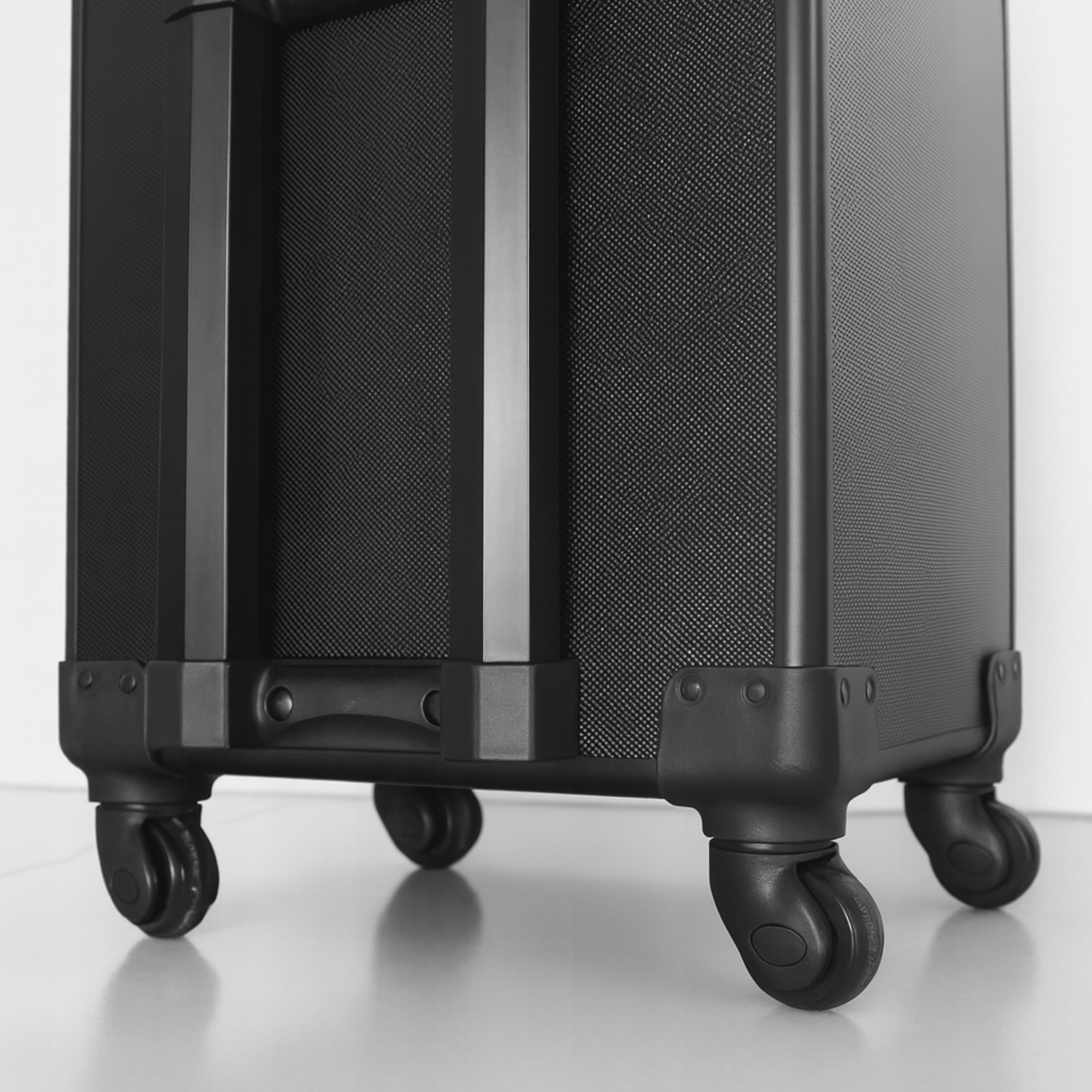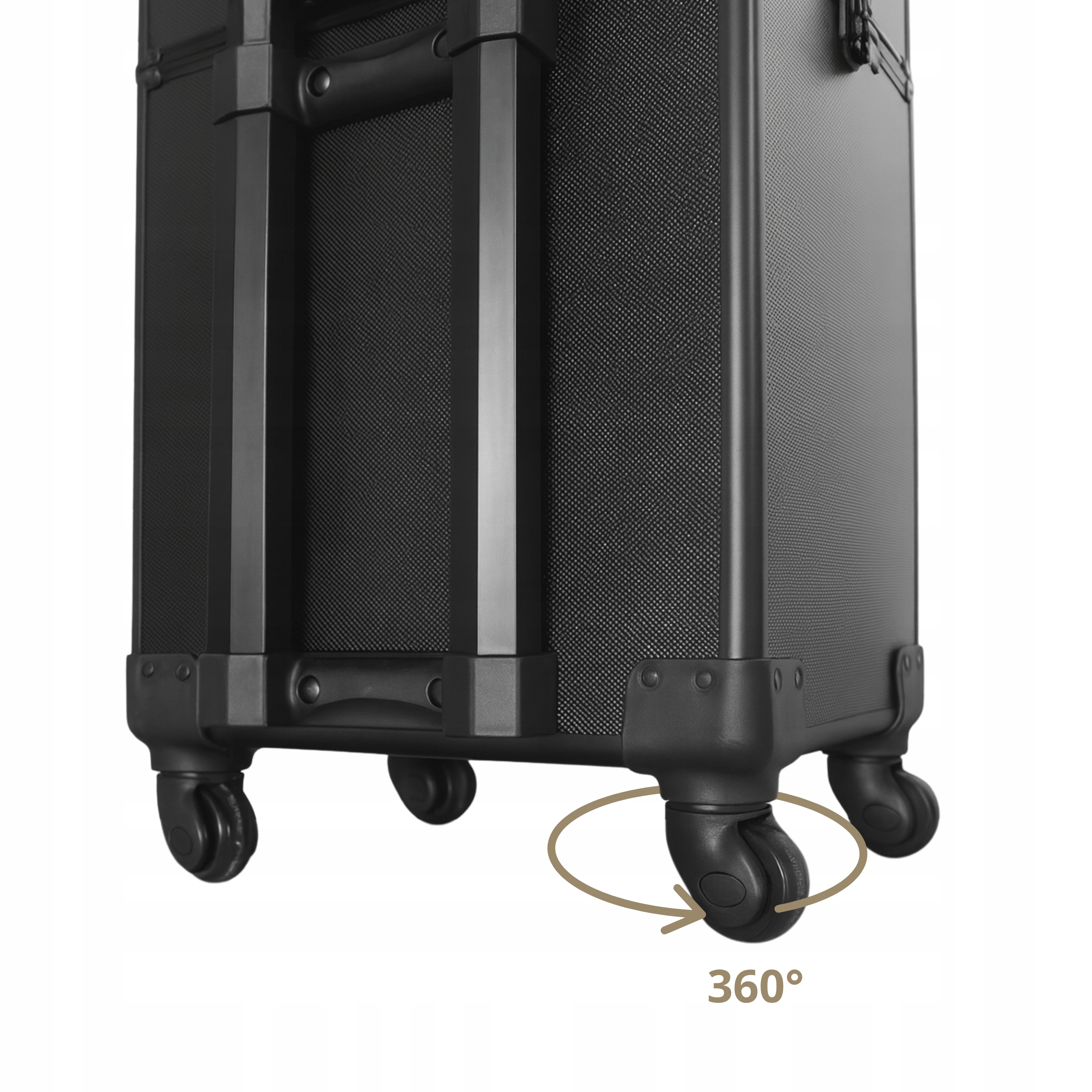Завдяки чотирьом колесам, що обертаються на 360° та висувній телескопічній ручці (54 см), кейс можна легко переміщати, навіть якщо він повністю завантажений.