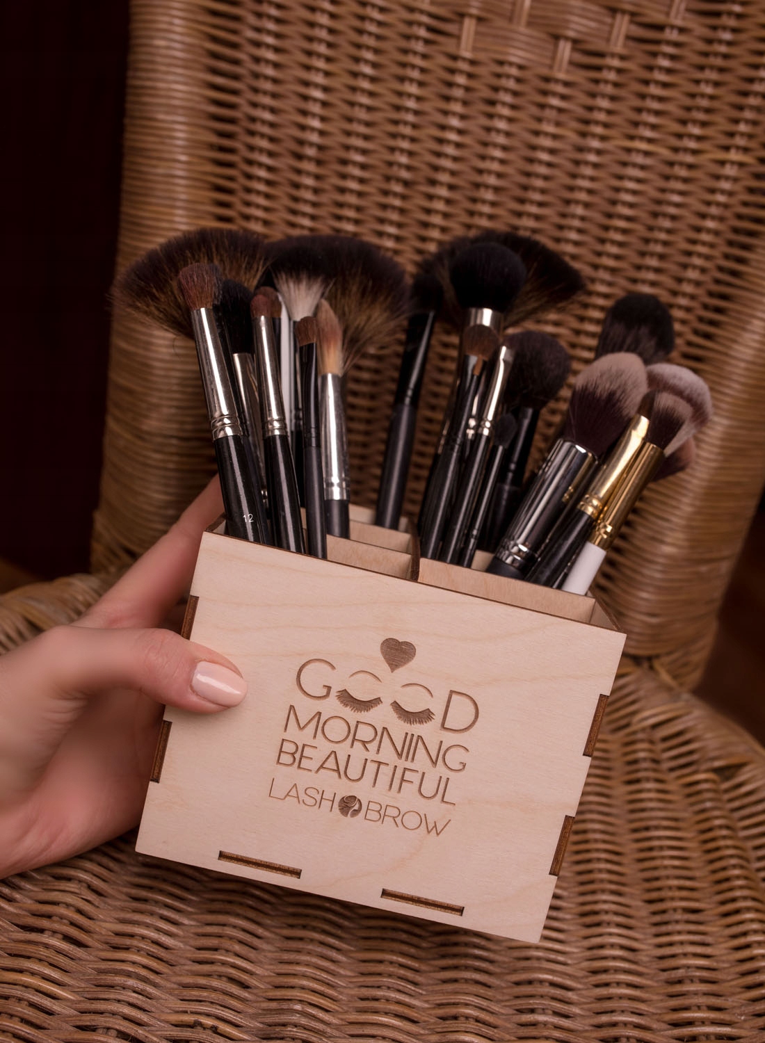 Натуральна фанера створить теплу атмосферу. Це додасть шарму будь-якому холодному, стерильному простору. Органайзери легкі, їх зручно носити куди завгодно. Він має природні відмінності кольорів, видиму зернистість і сучки, тому кожен виріб унікальний. Допомагає впорядкувати засоби для макіяжу.