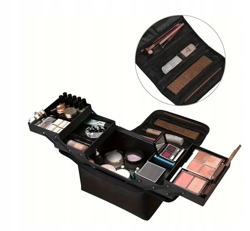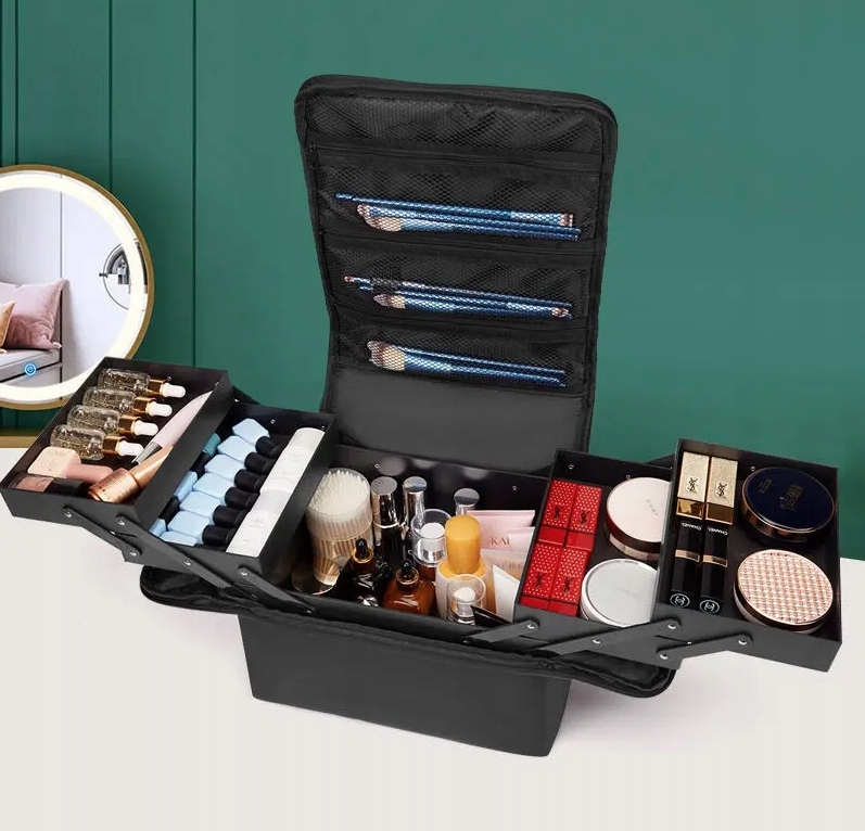 має 4 висувні перегородки та 1 велику нижню камеру, яка задовольнить ваші щоденні потреби, пов'язані з косметикою, наприклад. подорожі.