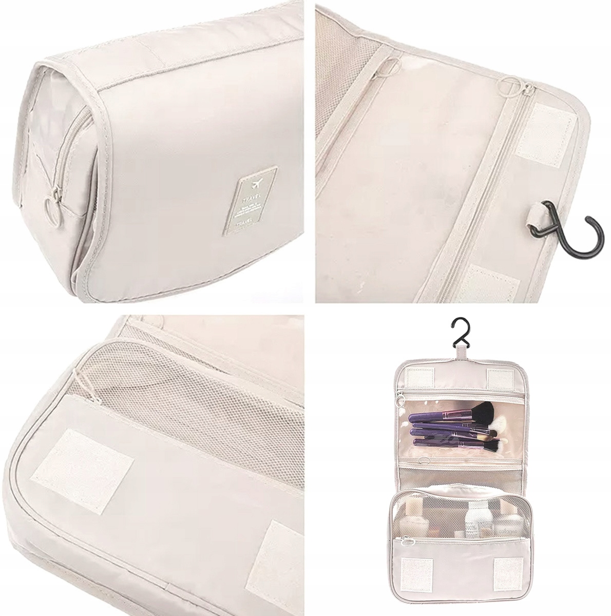 ✅ Косметичка додатково має спеціальну ручку завдяки чому вже розкладену косметичку можна повісити, наприклад, на гачок у ванній кімнаті.