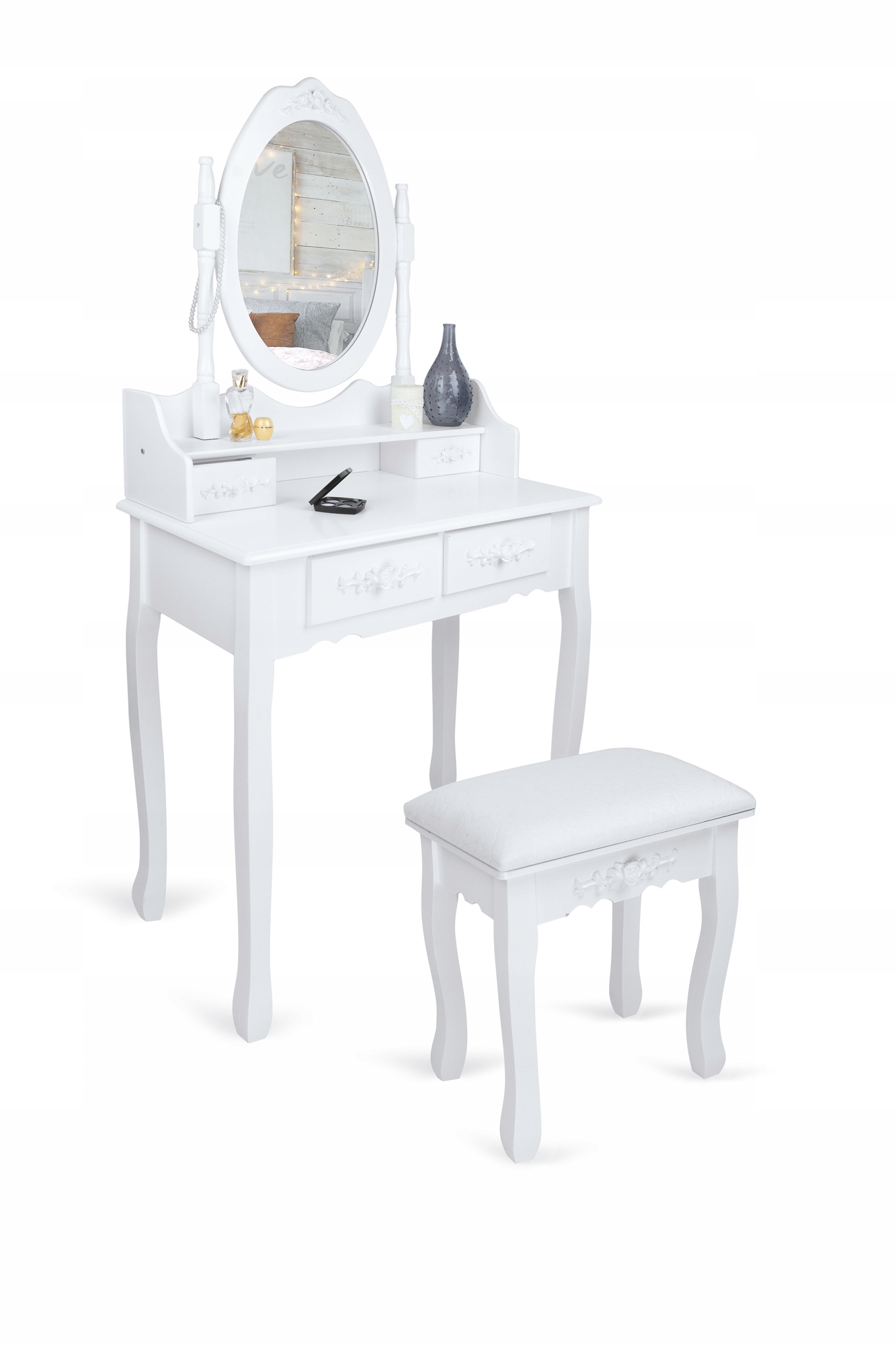 Туалетний столик виконаний в універсальному стилі, завдяки чому він чудово вписується як в сучасний, так і в класичний інтер'єр. Туалетний столик виконаний в мінімалістичному стилі, покритий білою, матовою фарбою. Давши волю своїй уяві, ми можемо прикрасити його відповідно до власних уподобань.