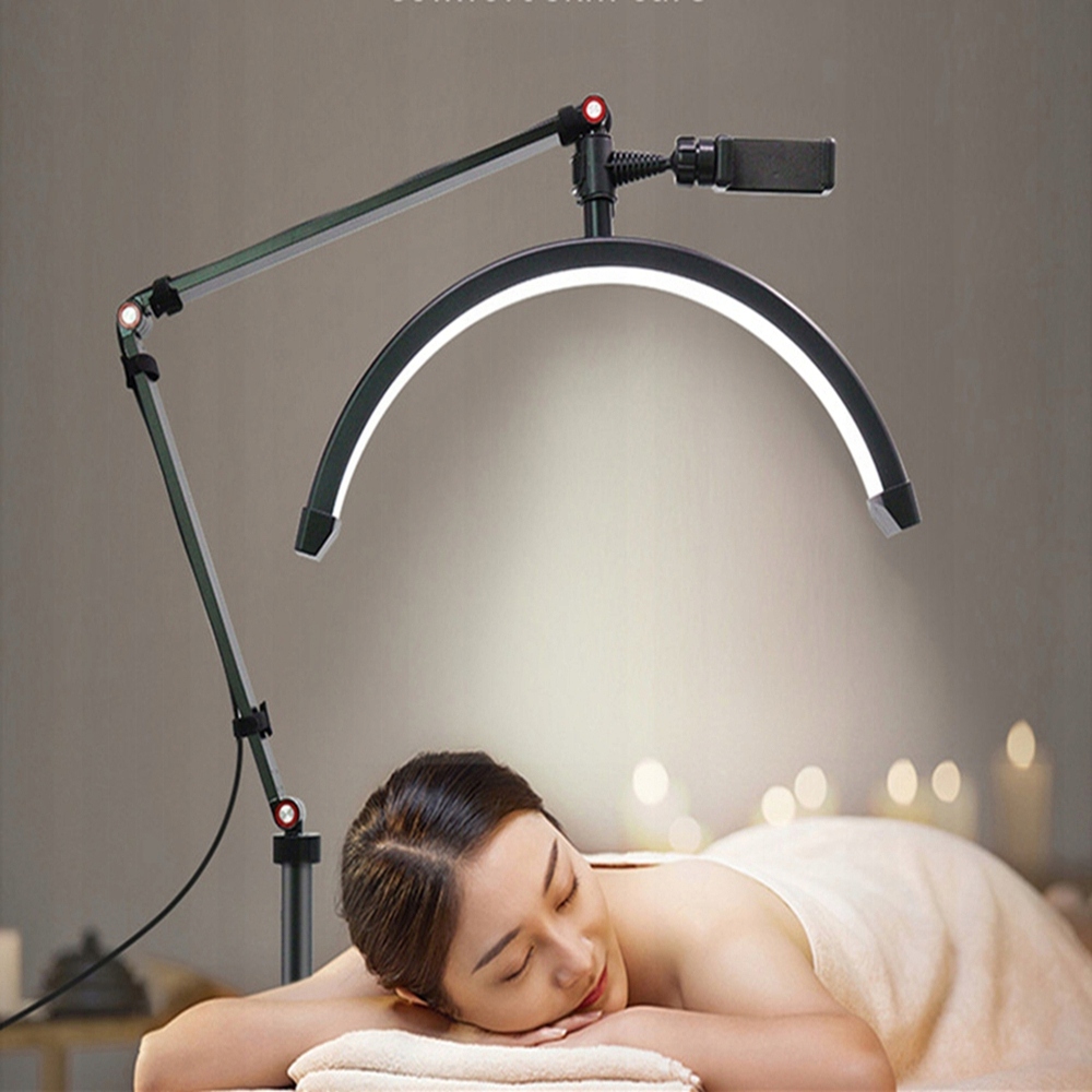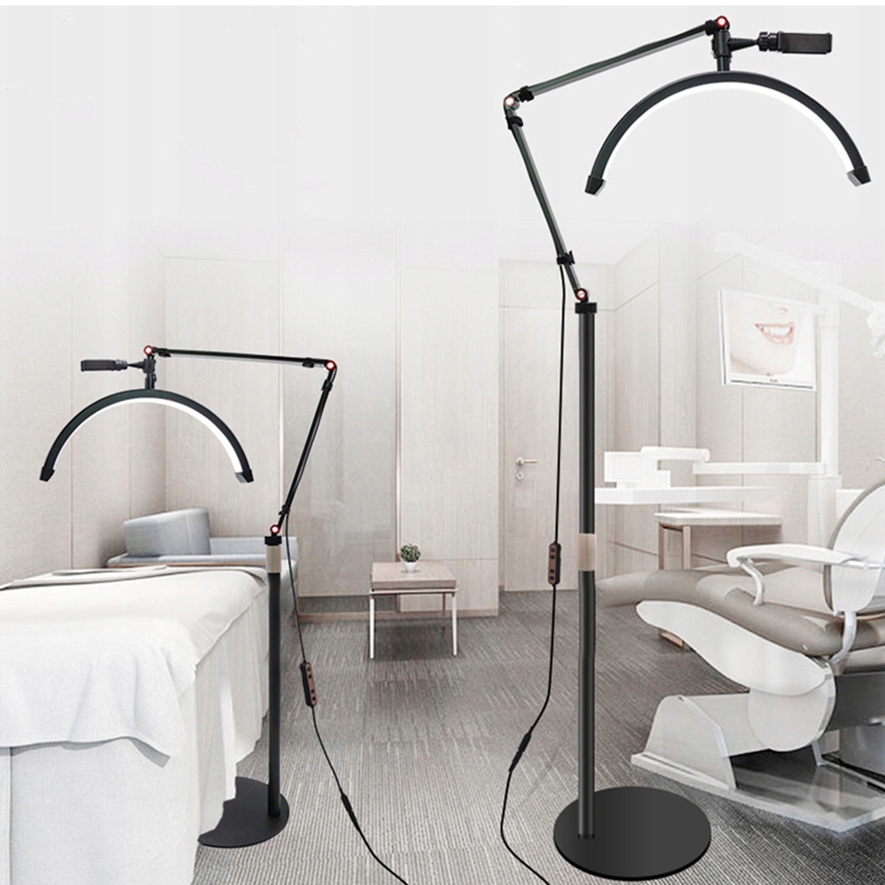 Спеціальний дизайн у формі півмісяця, 180 шт. двоколірних намистин лампи, вихідна потужність 20 Вт, високий індекс передачі кольору 90+, підлогове освітлення підходить для стаціонарних відеоблогів, прямих трансляцій салонів, дизайну салонів краси тощо.