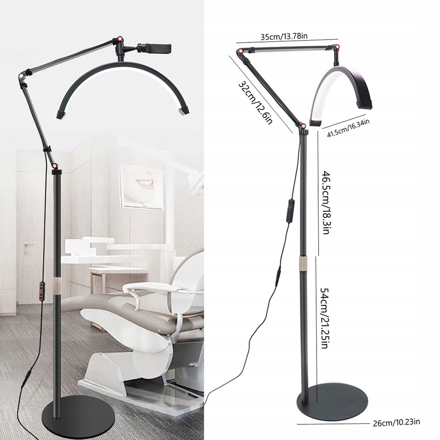 Регульована по висоті металева основа лампи 54-100,5 см, велика металева основа 26 см дає змогу розташувати заповнювальне світло на підлозі, стабільно та легко у використанні.