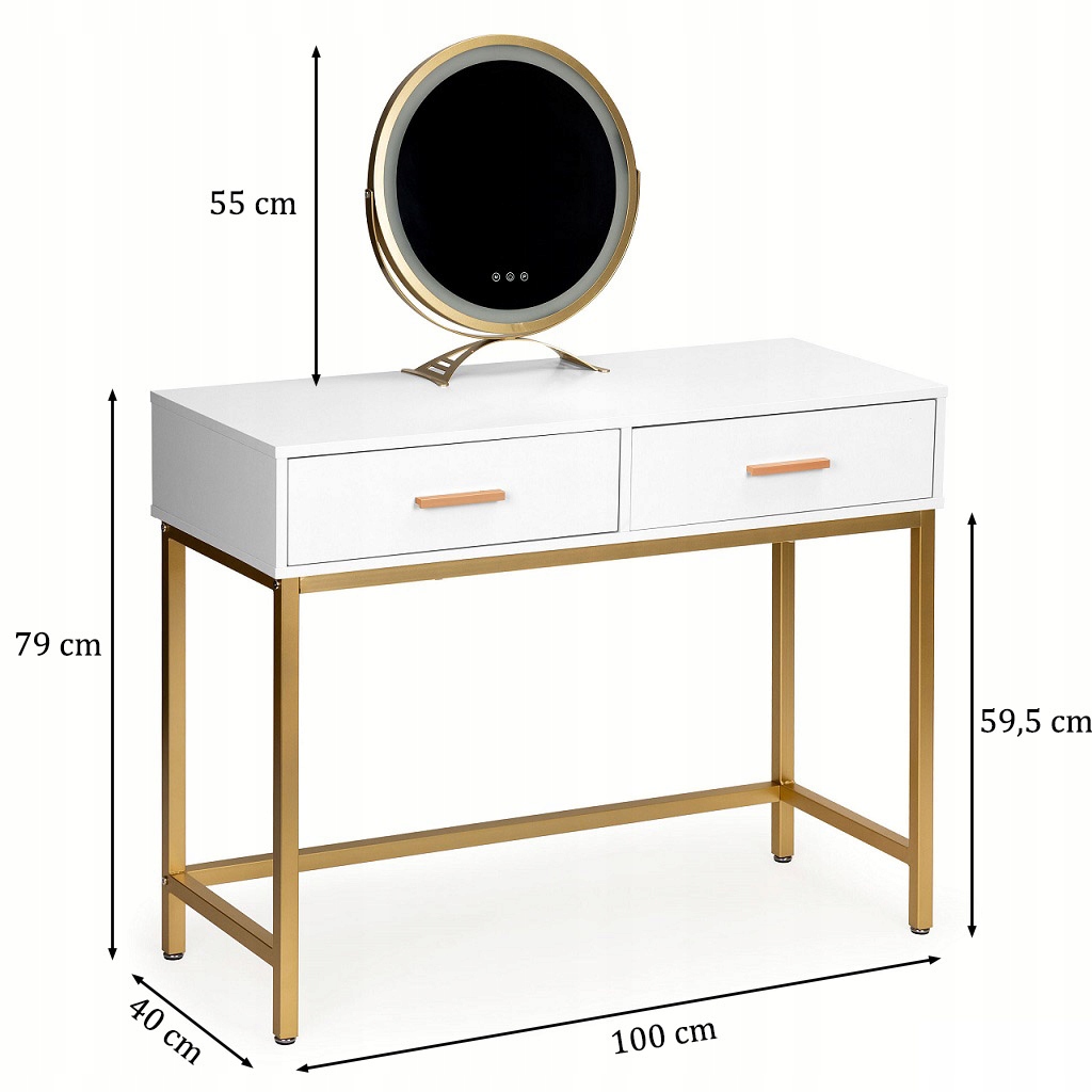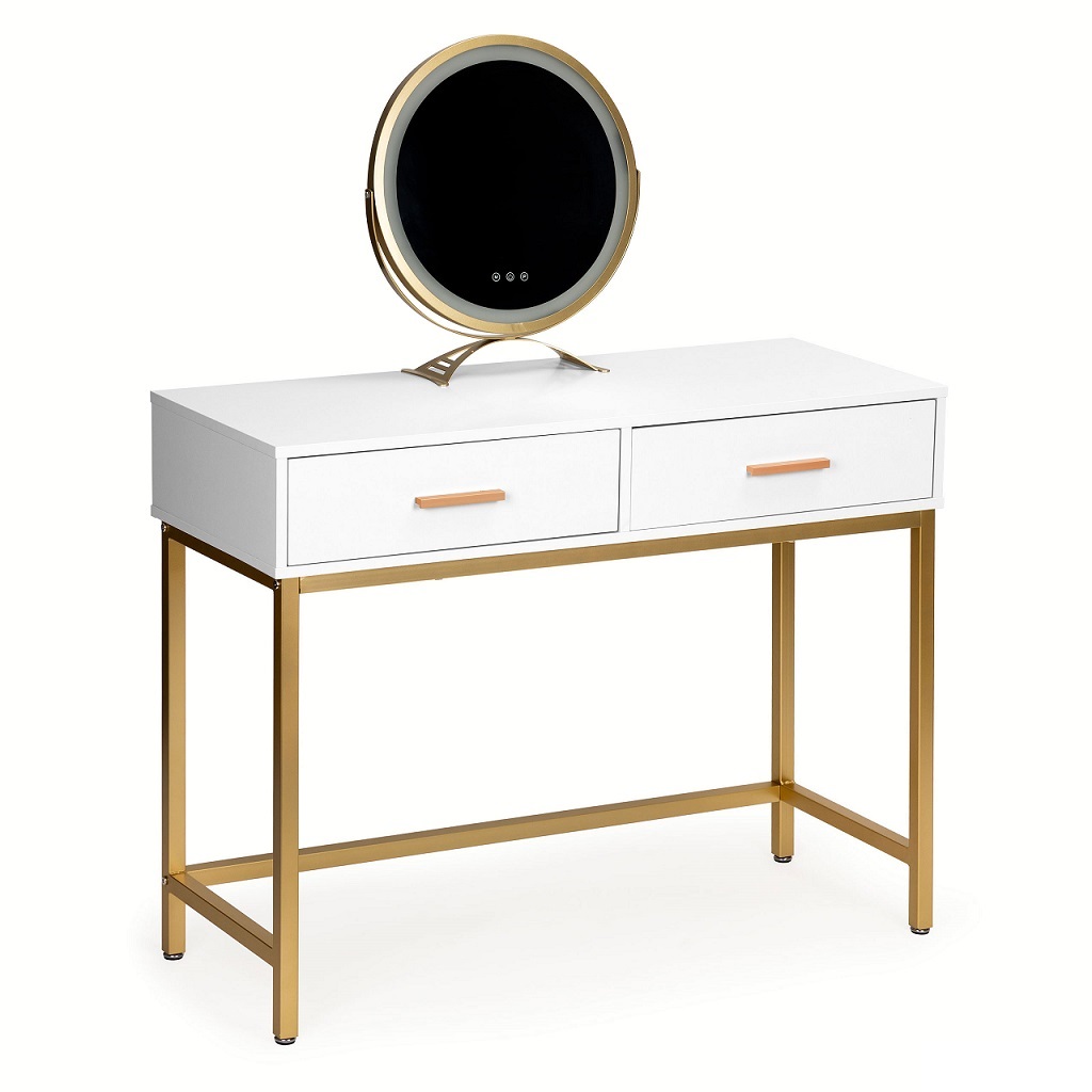 Туалетний столик доступний у біло-чорно-білому та золотому кольорах. Це сподобається людям, які люблять мінімалістичний сучасний дизайн.