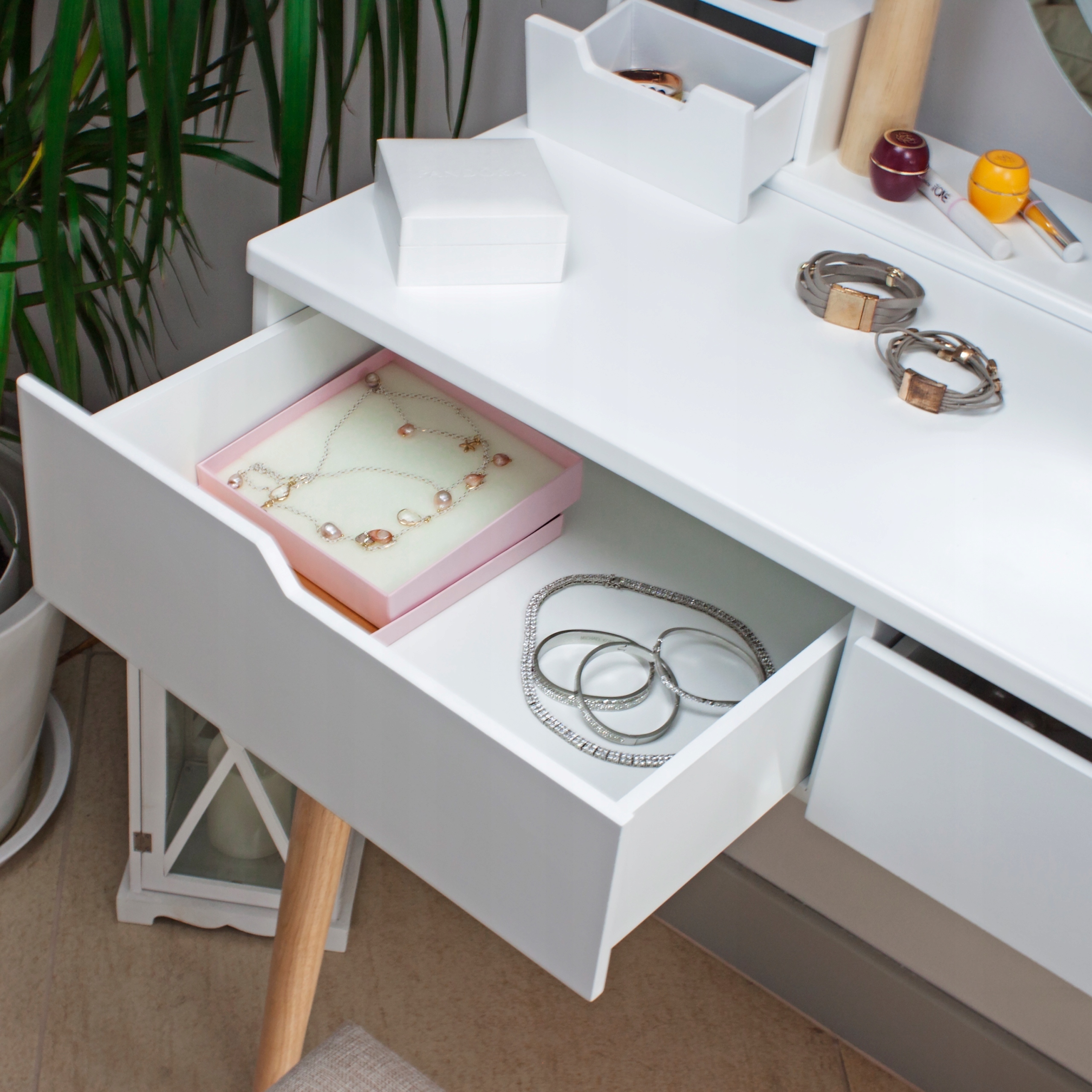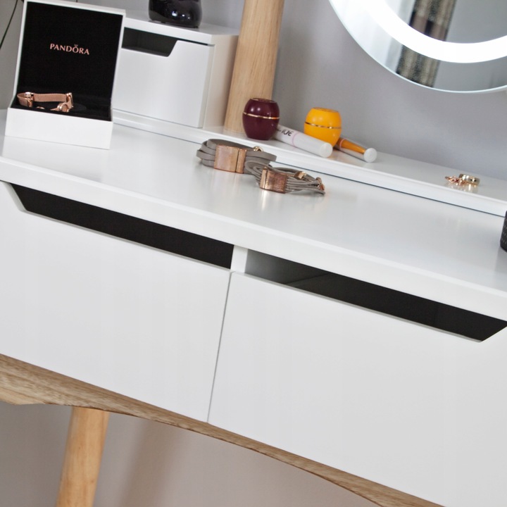 - Два ящика: ідеально підходить для косметики, ювелірних виробів, квитанцій, написання посуду та всіх дрібних речей, які нарешті матимуть своє місце,