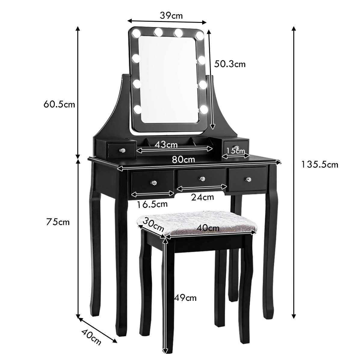 Світлодіодне підсвічування - 10 світлодіодних ламп з регульованою яскравістю забезпечують природне світло без тіней. Туалетний столик ідеально підходить для щоденного догляду та нанесення макіяжу.