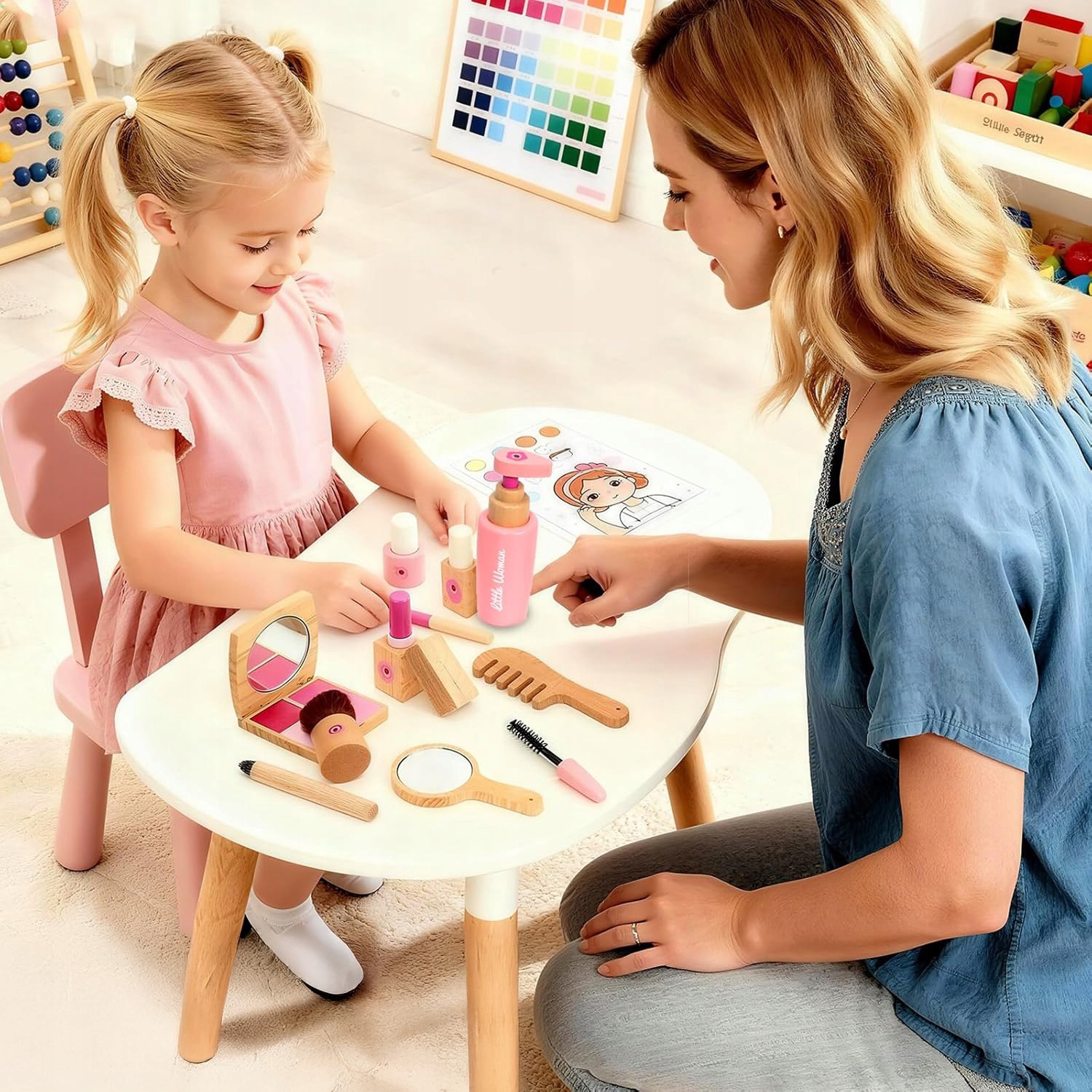 Ця дерев’яна іграшка для макіяжу для дітей не лише імітує макіяж дорослих, але й є формою мистецтва. Імітуючи процес макіяжу та одягання, діти вчаться спілкуватися та виражати свої почуття. Рольова гра розвиває соціальні навички та розуміння почуттів інших, підтримуючи практичний, соціальний та емоційний розвиток.