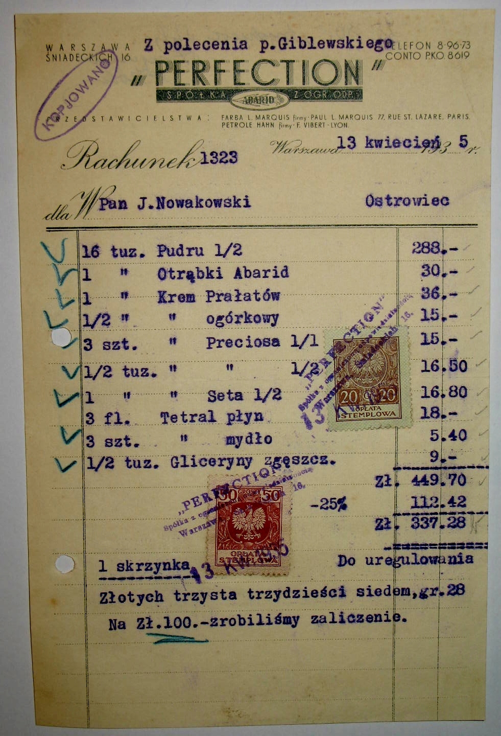 Оплачивая «Косметика Perfection 1935», вы можете быть уверены, что данное изделие из каталога «Счета-фактуры и счета» будет доставлено из Польши и проверено на целостность. В цене товара, указанной на сайте, учтена доставка из Польши. Внимание!!! Товары для Евросоюза, согласно законодательству стран Евросоюза, могут отличаться упаковкой или наполнением.