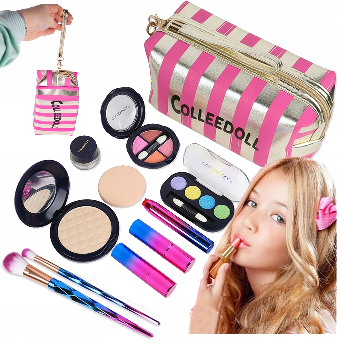Сумка "COLLEEDOLL" з косметикою для макіяжу з дзеркалом і ремінцем для перенесення.