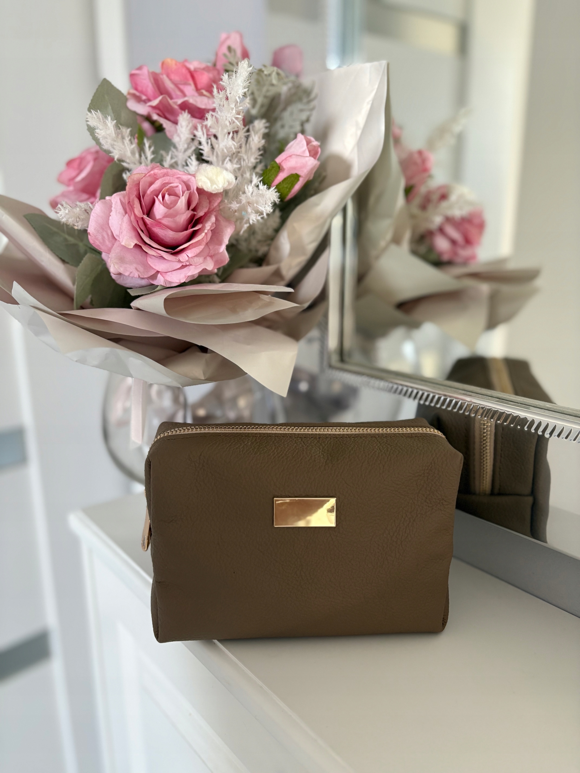 Я представляю прекрасного класичного косметолога з натуральної шкіри, закінченої водонепроникною підкладкою золотистого кольору.
