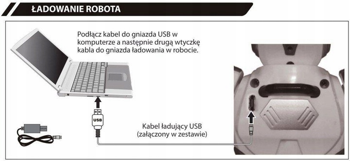 Робот не потребує батарейок, оскільки він має вбудований акумулятор, який може можна заряджати за допомогою USB-кабелю, що входить до комплекту.