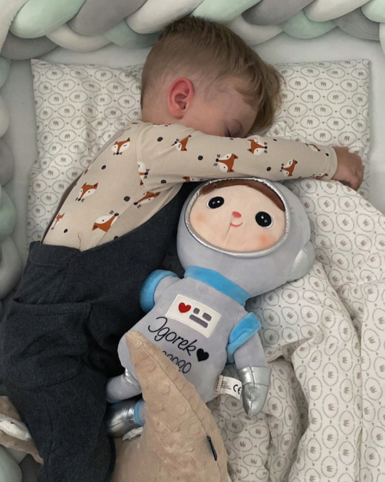 Ляльку Metoo Космонавт можна персоналізовано за запитом, тобто ми можемо вказати ім’я обдарованої дитини на животі під вишитою графікою.