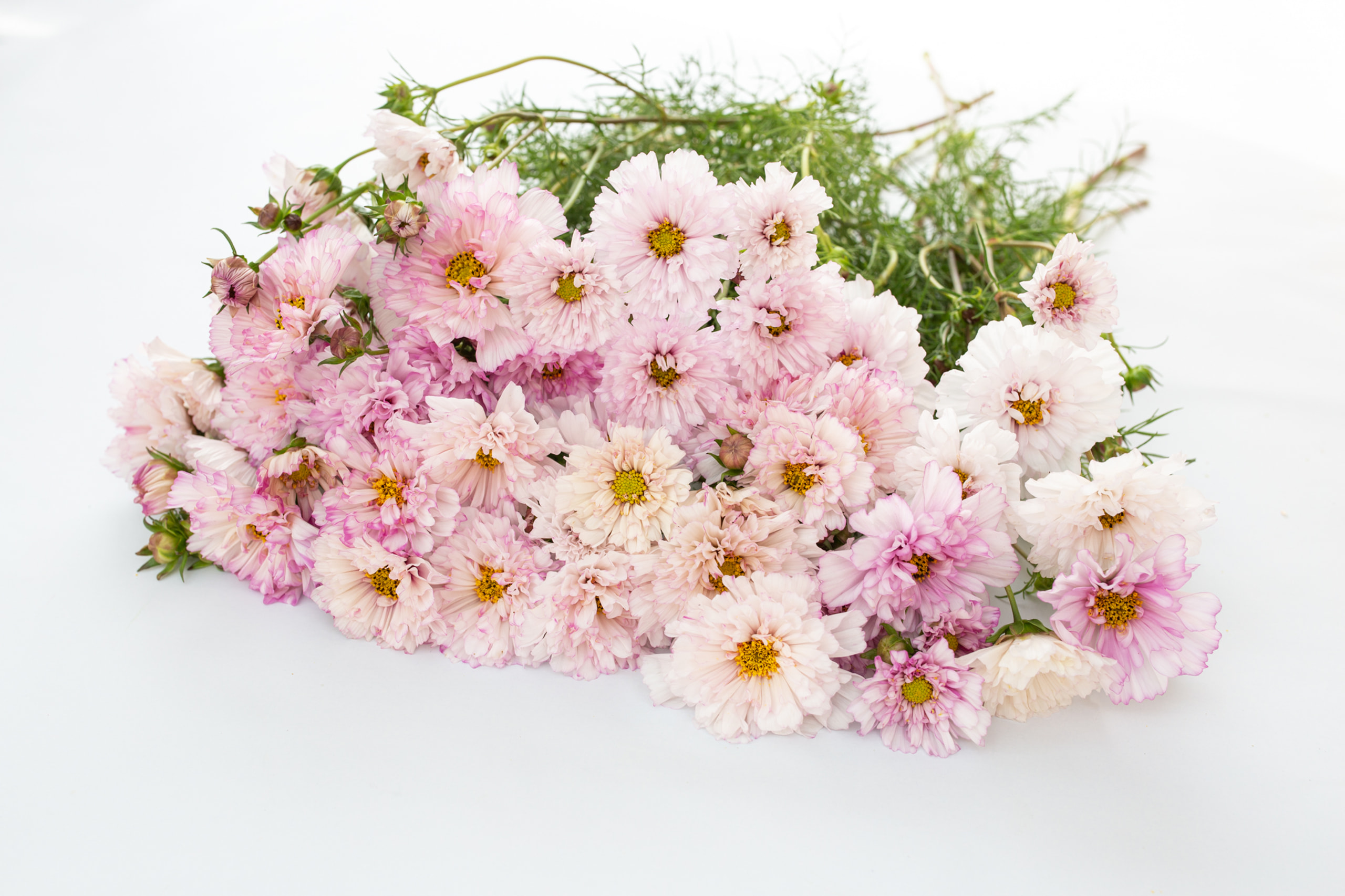 Космос "Двічі клацання" рожевого кольору ' -захоплююча різноманітність простору, який розрізняється повними, двоколоними квітами в рожевому та білому тіні. Ця рослина має елегантний вигляд, і його рясне цвітіння вводить у сад барвисту гармонію. Завдяки своїм унікальним квітам, "двоколірний рожевий", буде чудовим вибором для квіткових грядців, сільських садів, а також вирізаною рослиною.