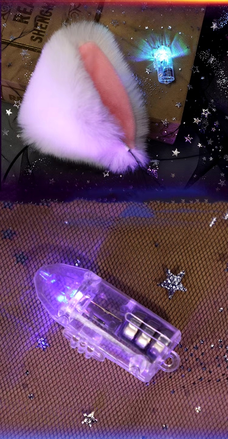 У кожному вусі є невеликий пристрій зі світлодіодом, батарейками та перемикачем.