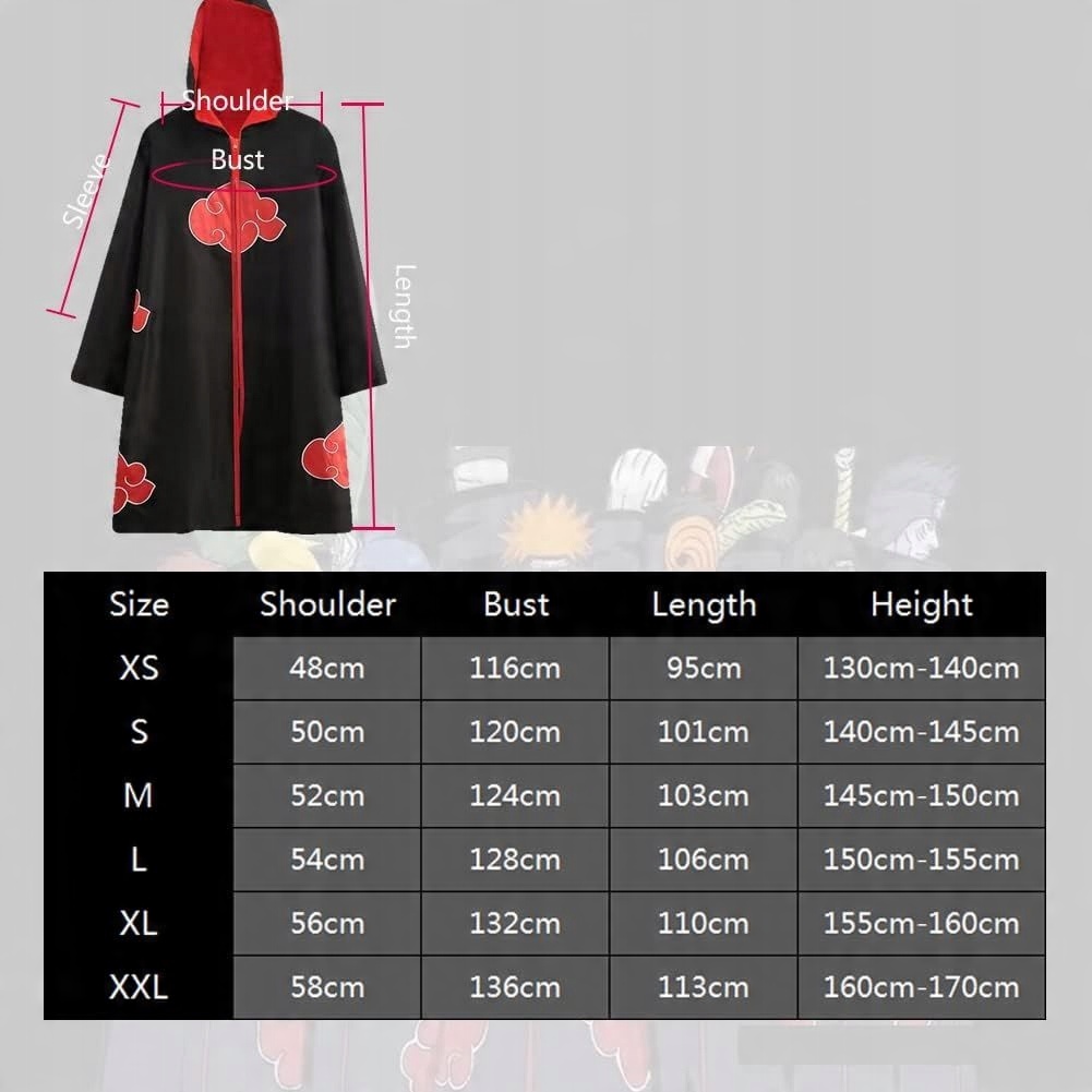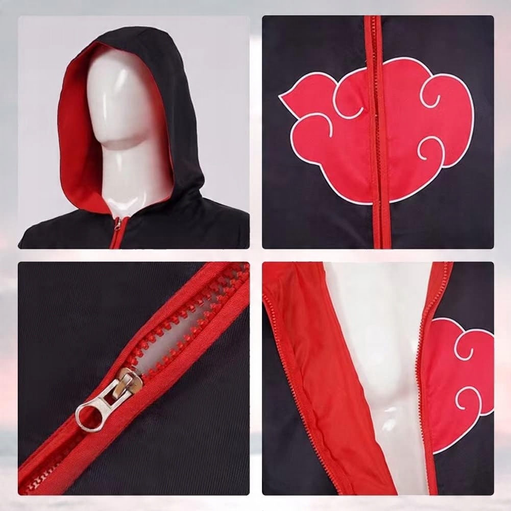 Костюм-накидка Акацукі виготовлений зі 100% поліефірного волокна, зручний у носінні та має якісну обробку. вишивка, вдосконалена технологія візерунків, яка робить колір більш яскравим, а поділ добре зшитий і правильний.
