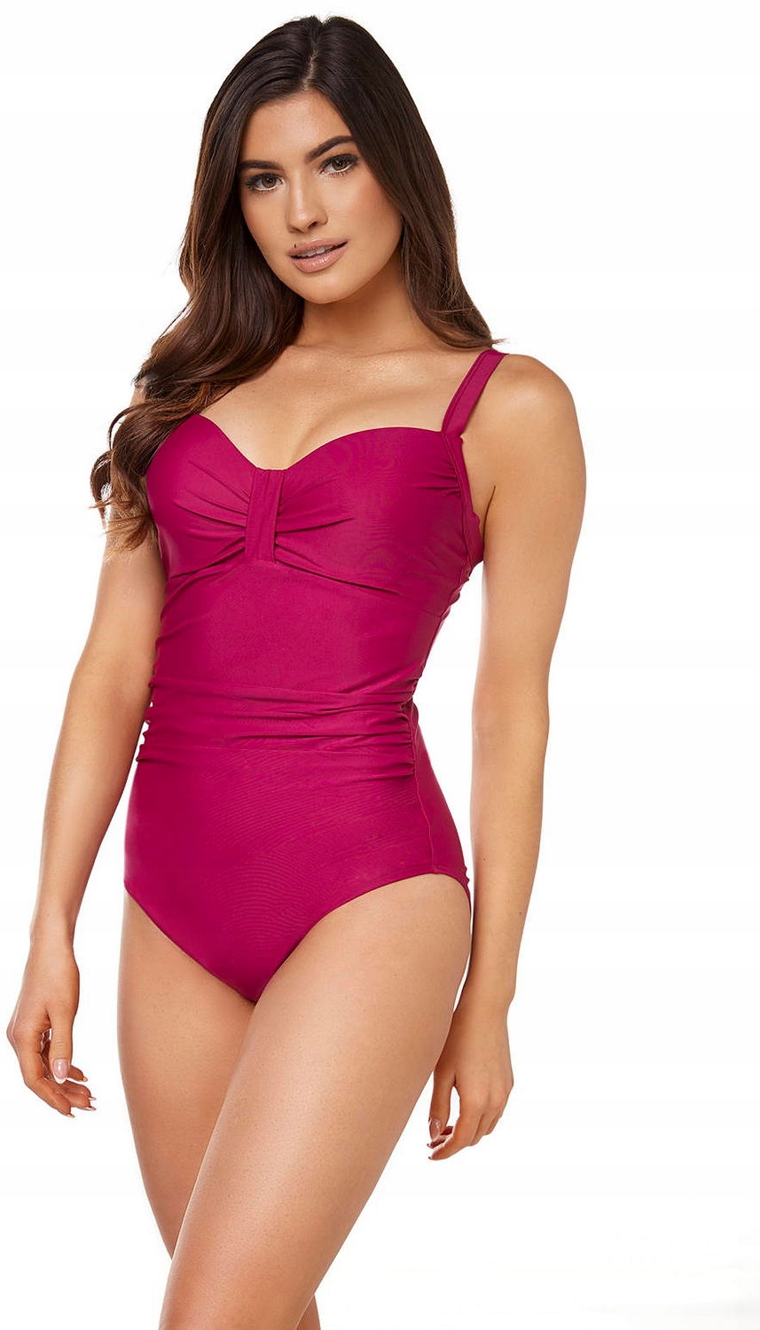 Olivia - це костюм, призначений для жінок з повнішою фігурою, які хочуть виглядати чудово на пляжі та в басейні. М’які повні чашки та дроти під бюстом, а також регульовані бретелі допомагають гарно відобразити бюст, добре його підтримуючи. Спеціальна утягуюча підкладка спереду костюма допомагає підтягнути фігуру, виконуючи роль коригуючої білизни. Ніжні зморшки на грудях і животі додають витонченості костюму і маскують недоліки фігури. Костюм Олівії - це поєднання елегантності та чудового крою - маленька чорна сукня серед костюмів.