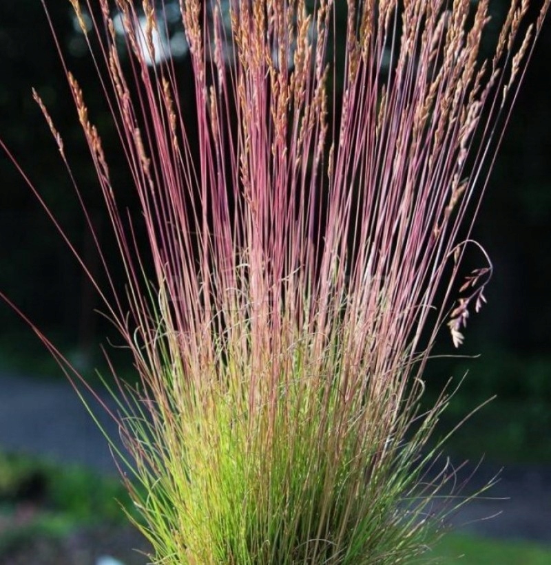 Росте до 30 років заввишки см, утворюють компактні щільні пучки. Наприкінці літа кінчики листя набувають чудового червоного кольору, що надає траві особливого вигляду. Рясно цвіте з червня по липень, утворюючи сріблясті суцвіття з лілово-рожевими відблисками. Пагони суцвіть також мають виразне фіолетово-червоне забарвлення, яке зберігається кілька тижнів і зникає в міру відцвітання.