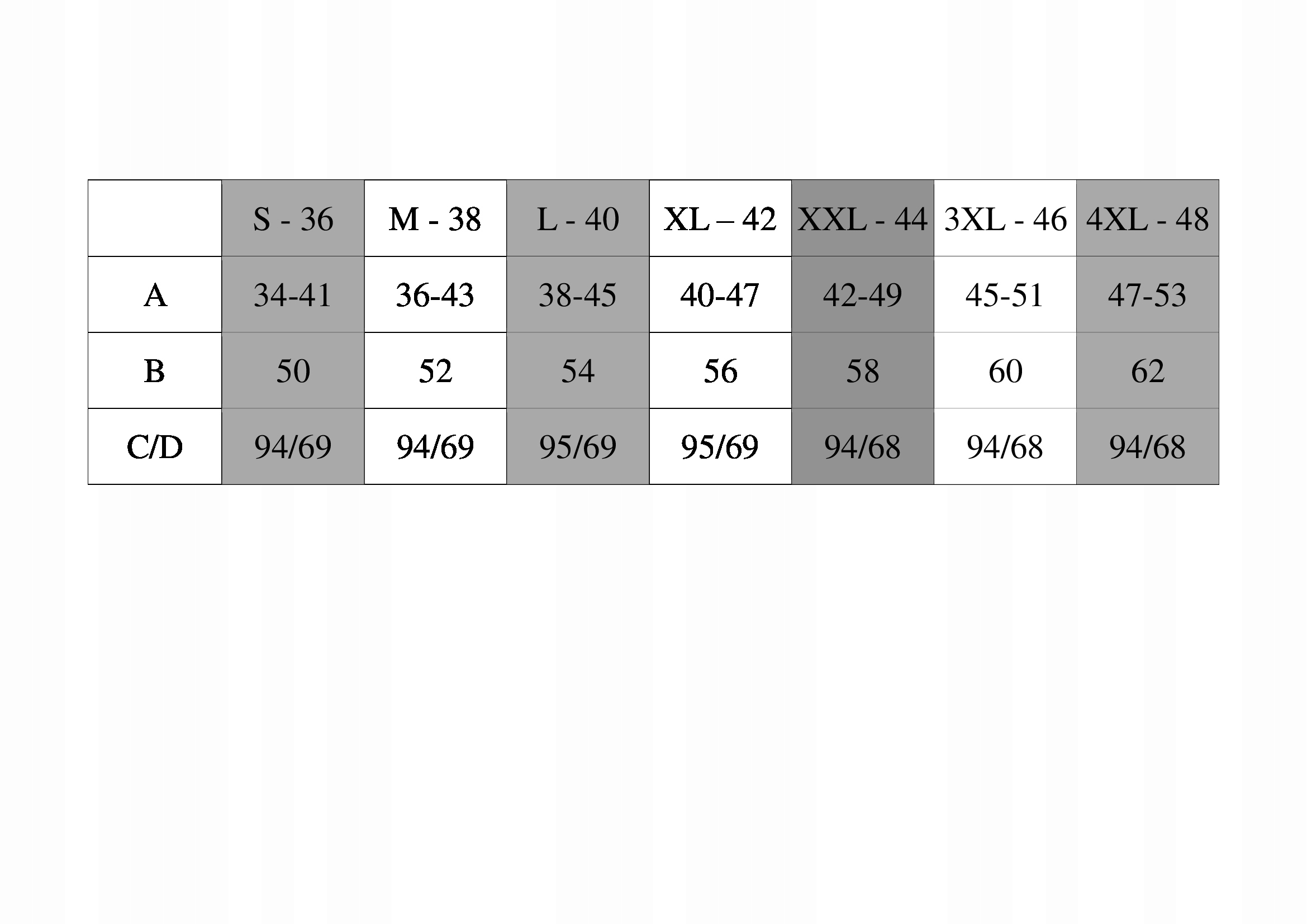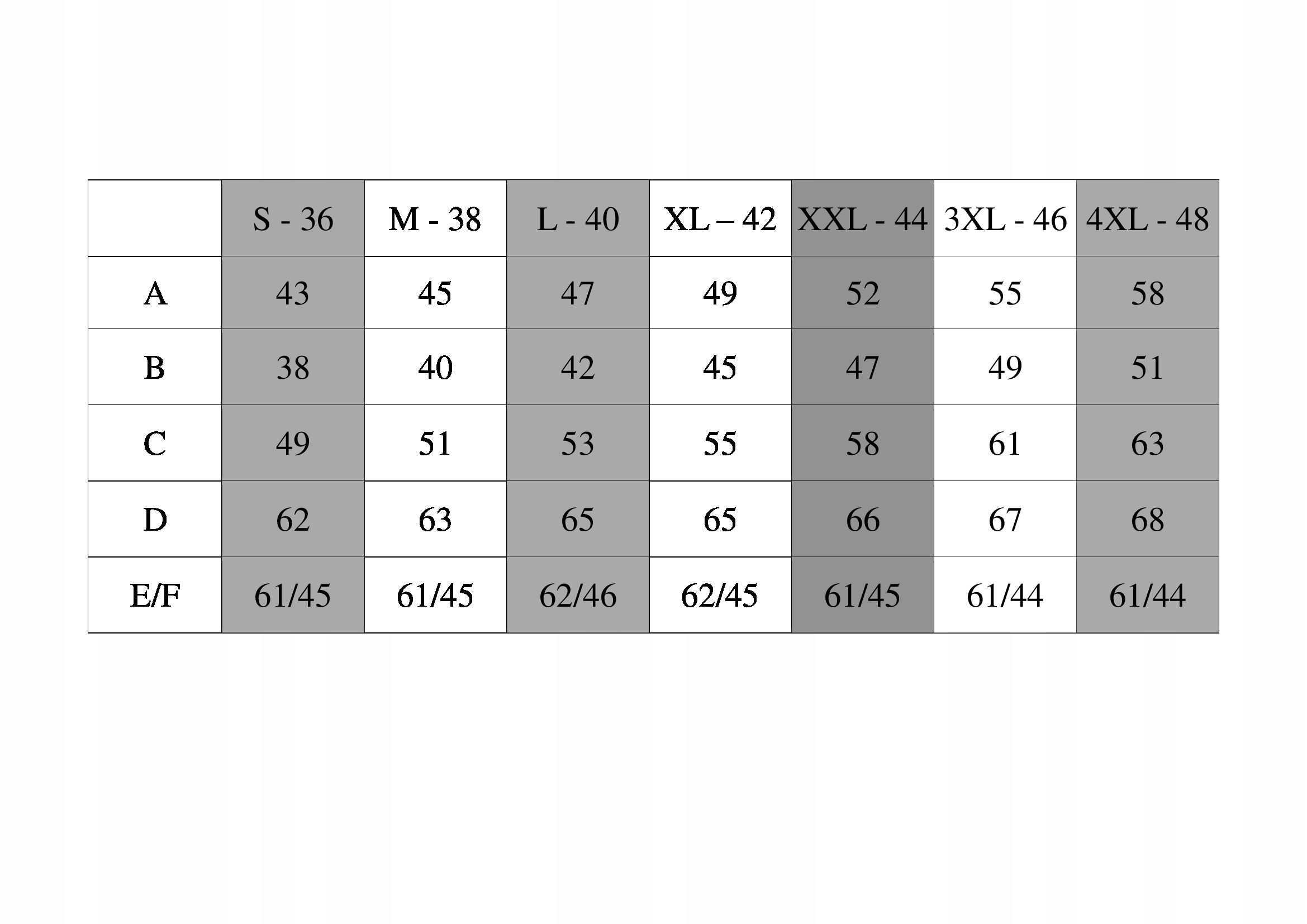 Розміри, наведені в таблиці - Порівняйте її, стандартний розмір польського, що відповідає реальності.