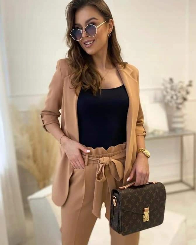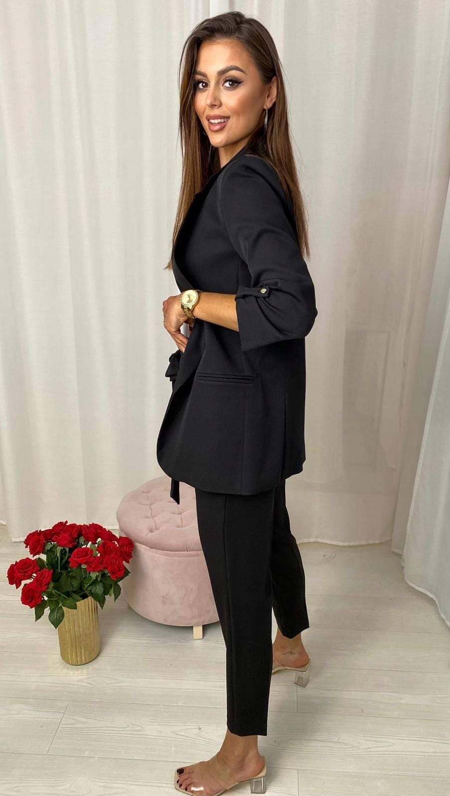 Піджак на підкладці, рукав 3/4, додатково застібається на гудзик, гарні відкладні лацкани, ідеальний крій, скомпоновані виглядають чудово.