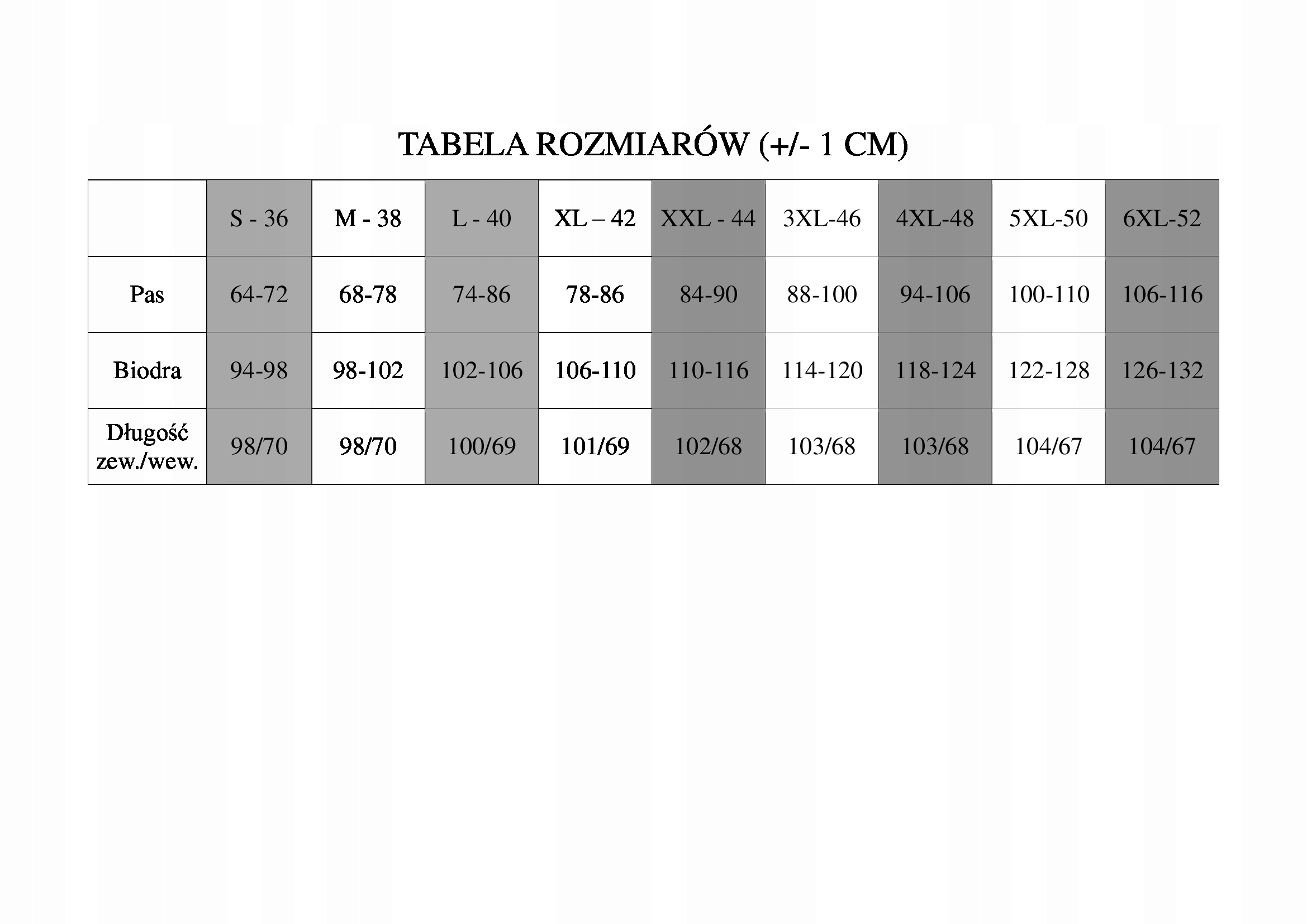 Розміри наведені в таблиці - уважно порівнюйте, польські стандартні розміри відповідають дійсності.