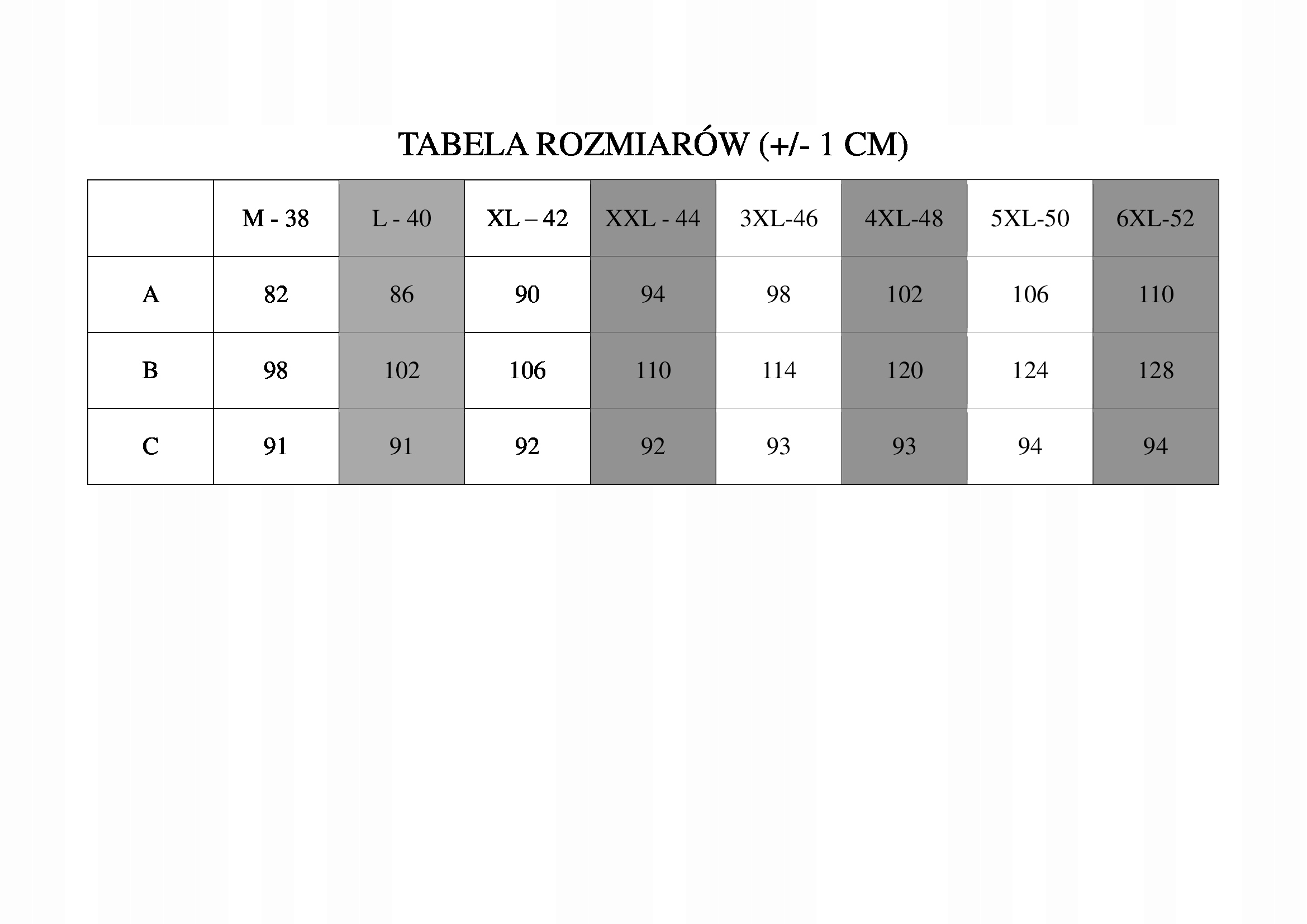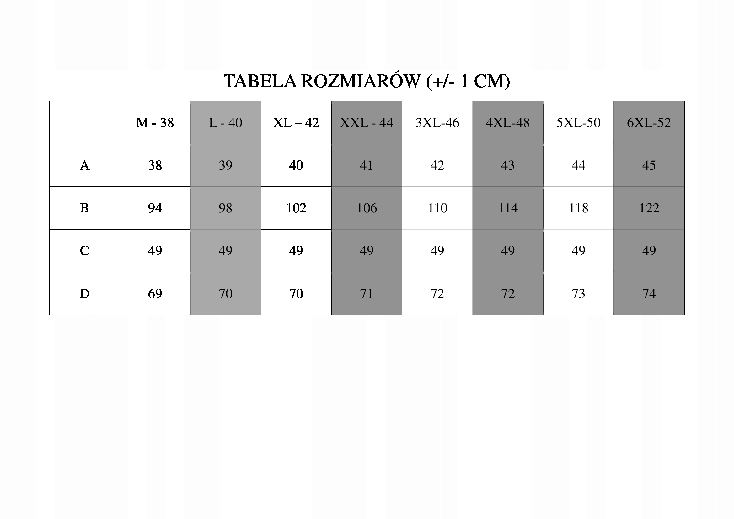 Розміри наведені в таблиці - уважно порівнюйте, польські стандартні розміри відповідають дійсності.