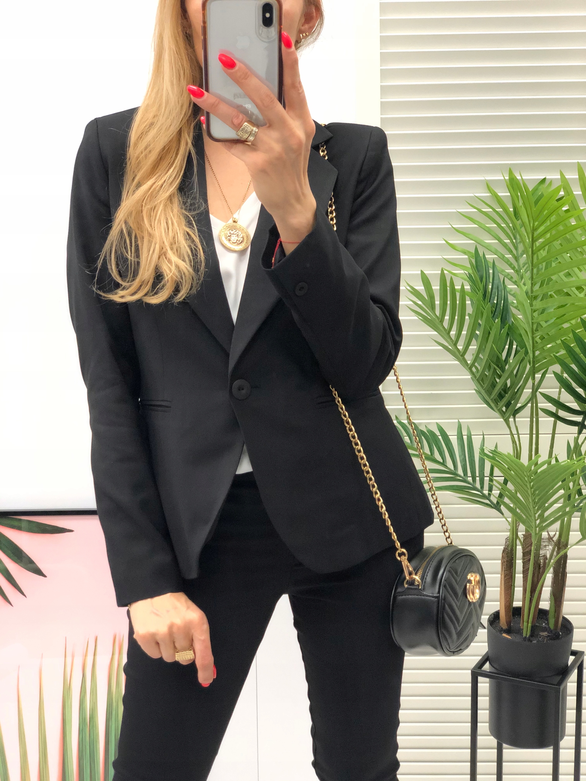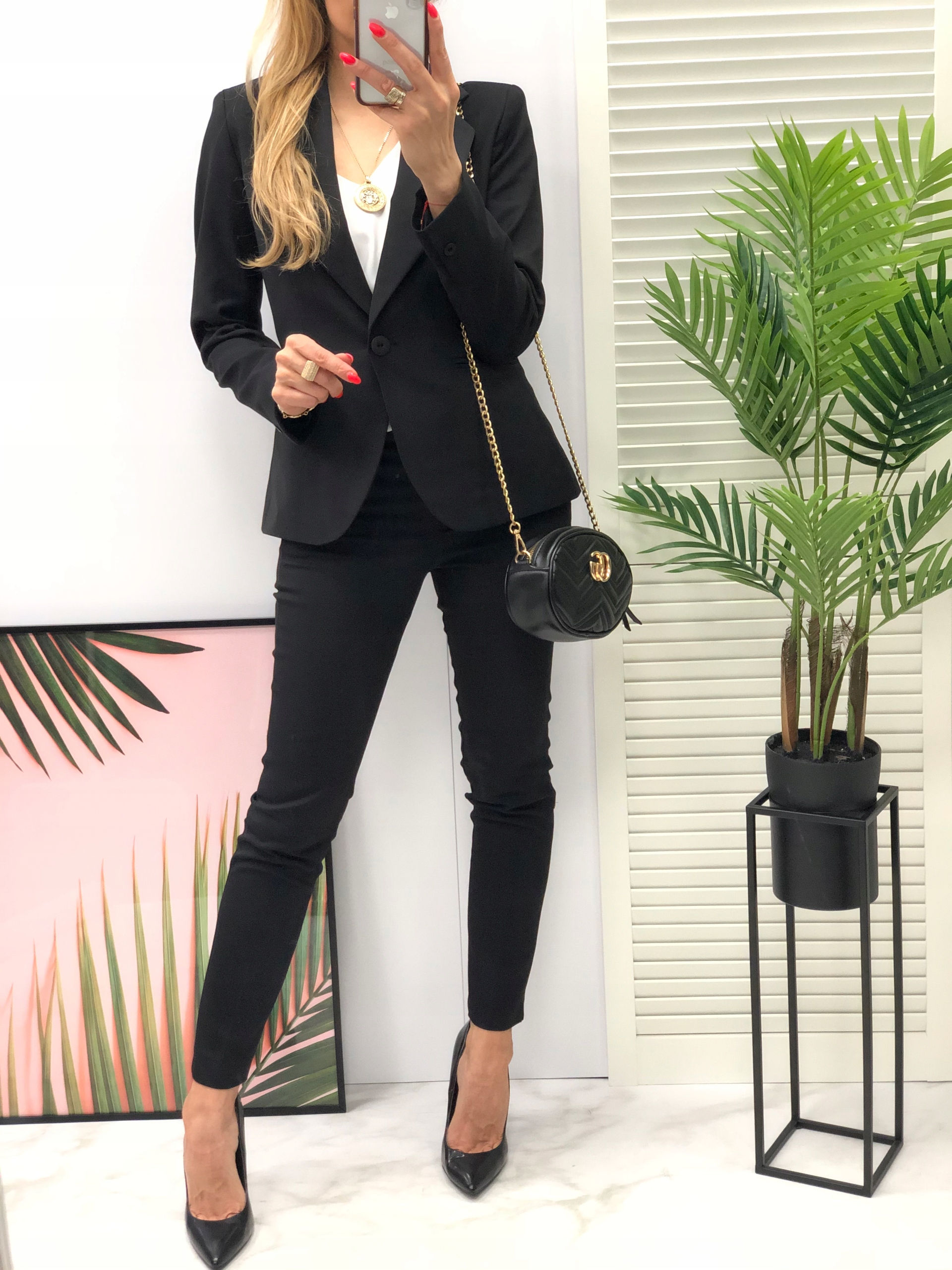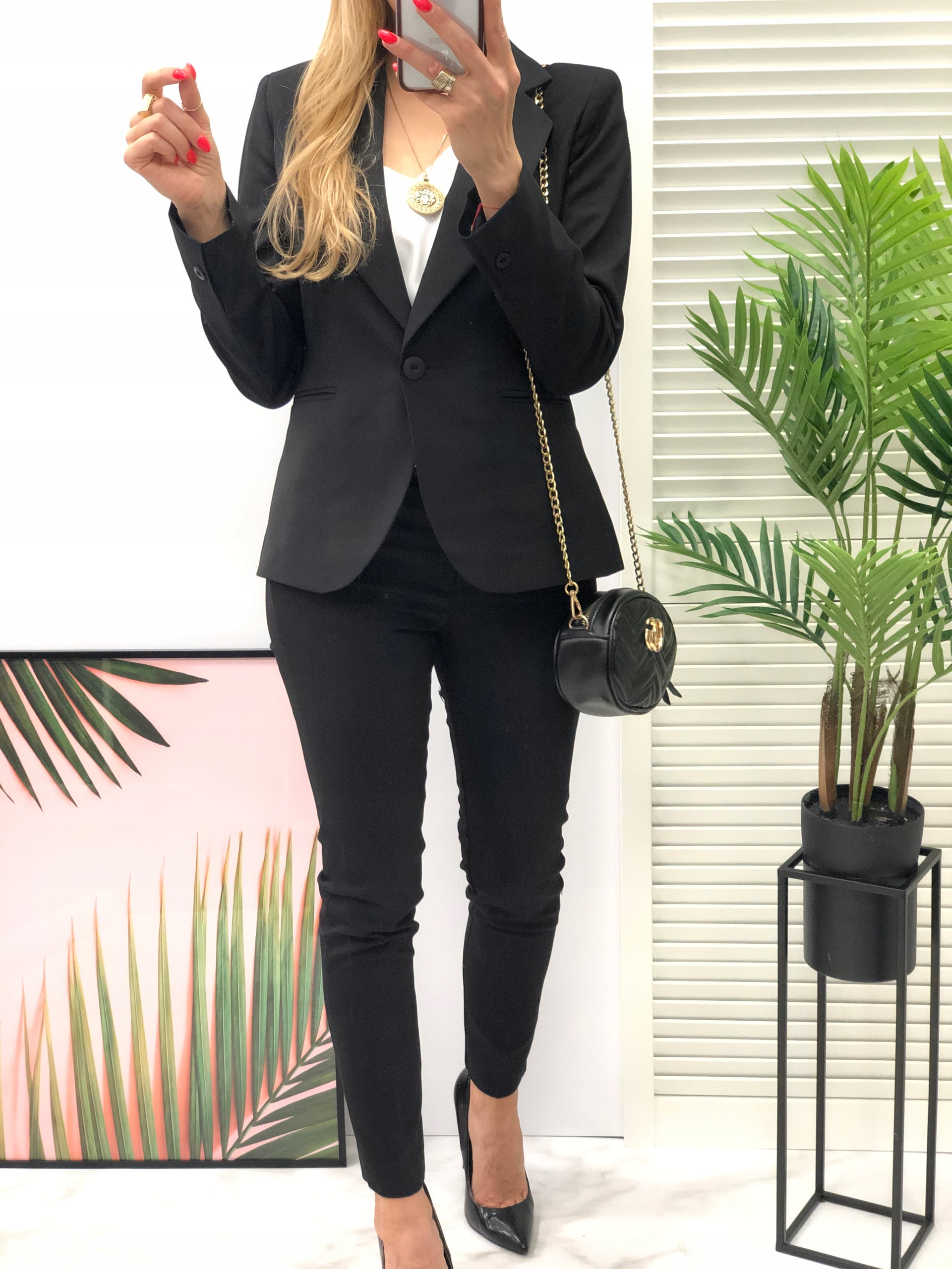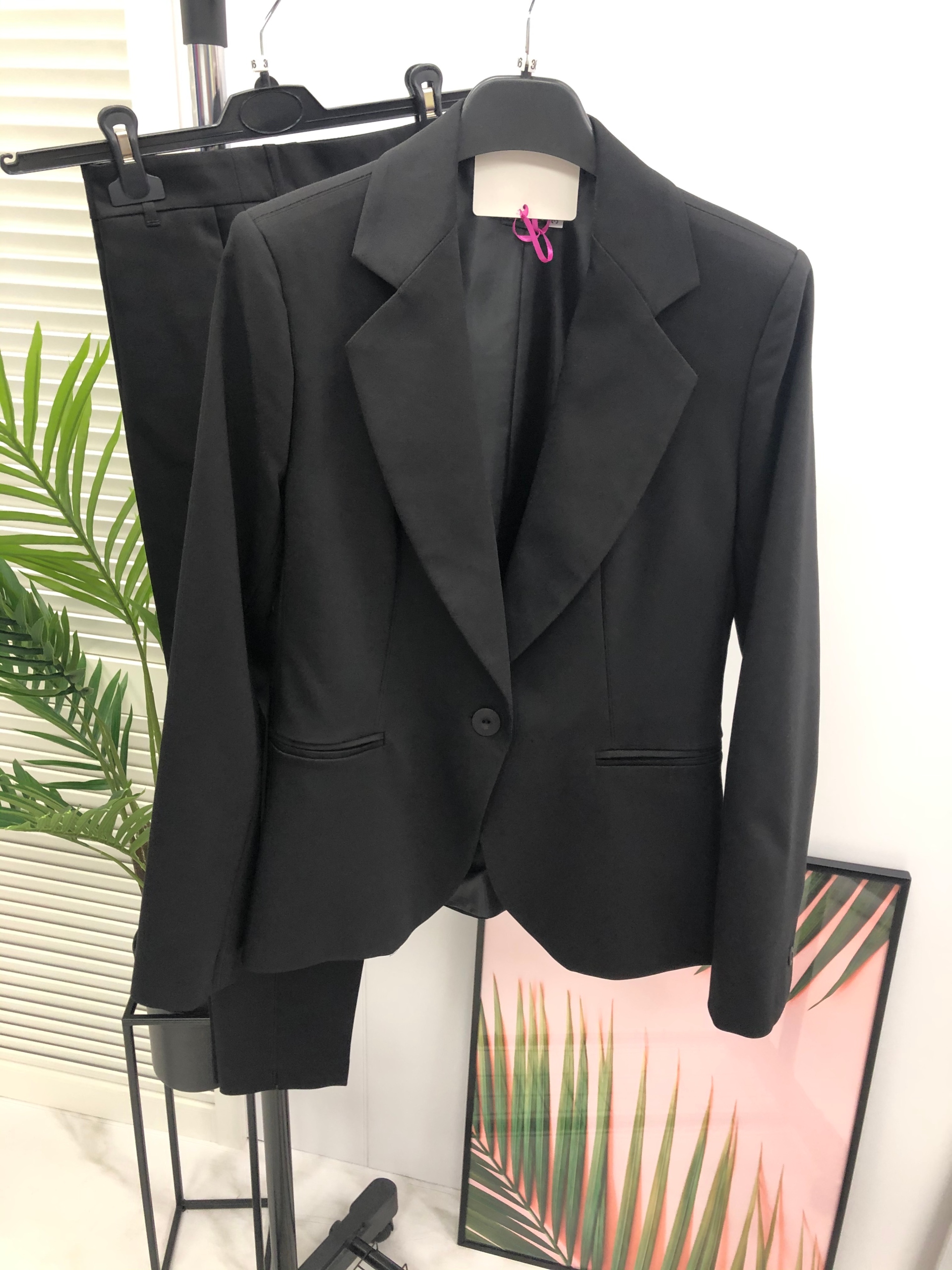 Класичний піджак на підкладці, що застібається на один ґудзик і класичні брюки 7/8.