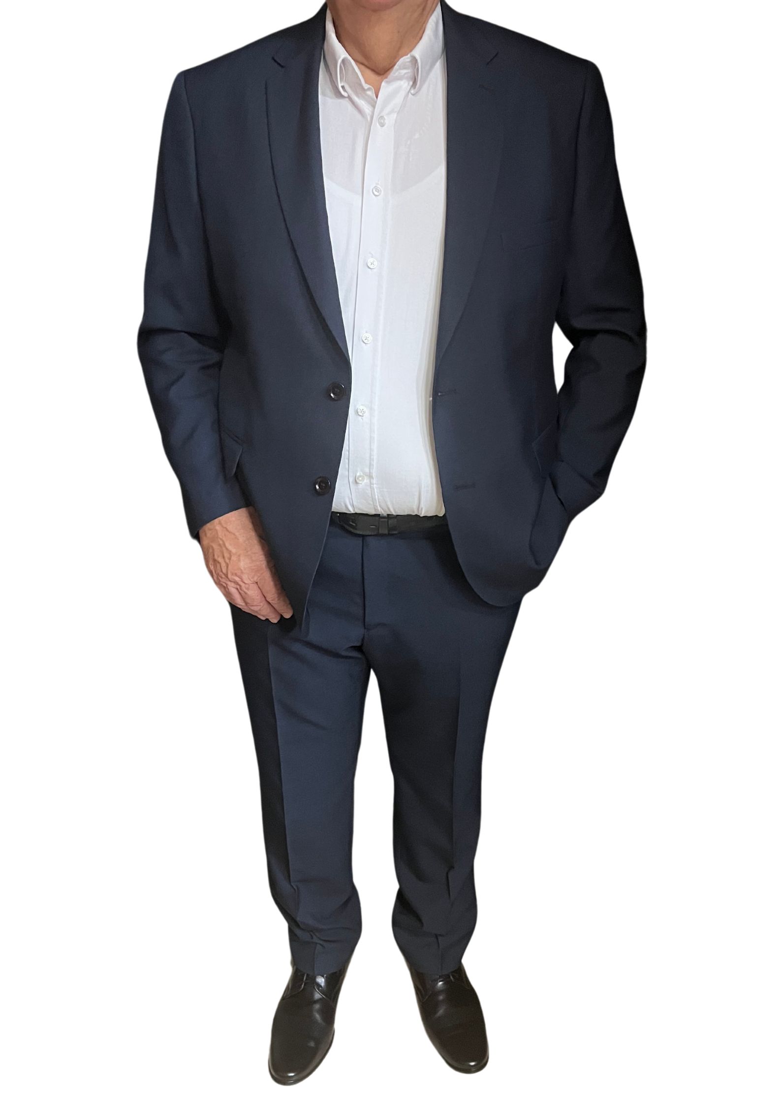 Надзвичайно елегантний чоловічий костюм-двійка з графітової тканини. Ідеально підходить для великих заходів та святкувань. Костюм виготовлений з м'якої, комфортної тканини, яка ідеально підкреслює фігуру. У комплект входять шикарні брюки, запресовані в класичну складку.