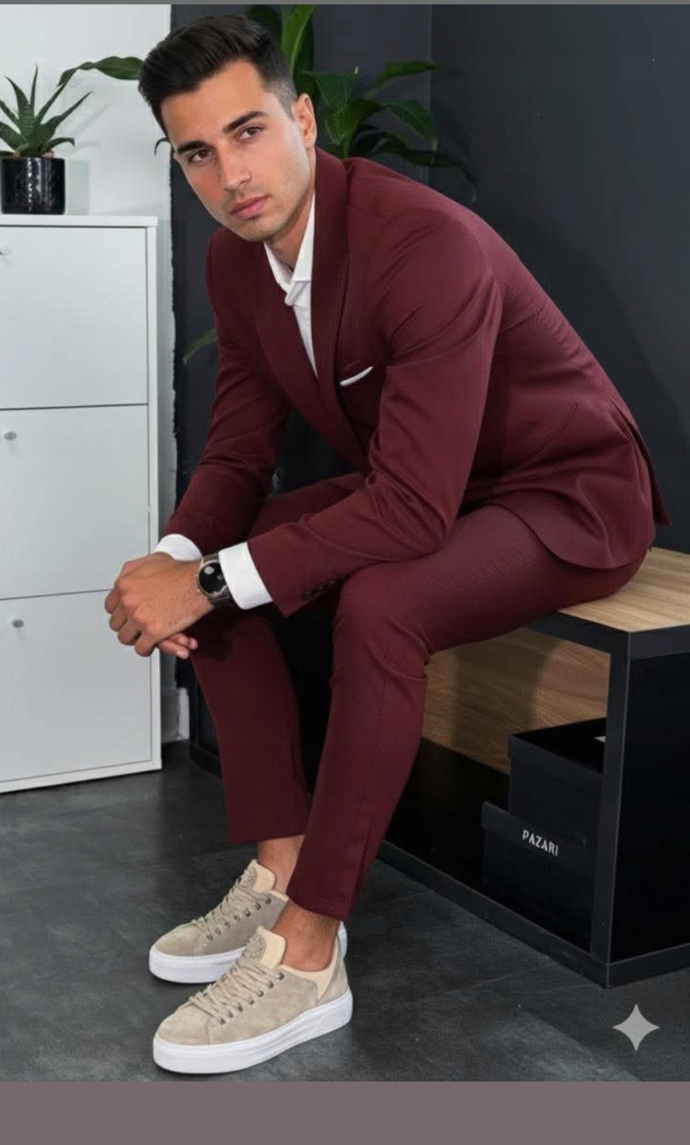 Чоловічий костюм – шикарний і елегантний, унікальний приталений малюнок, який поєднується з джинсами та елегантними брюками. Наведені розміри виміряні рівно, без розтягування, допуск +/- 2 см.