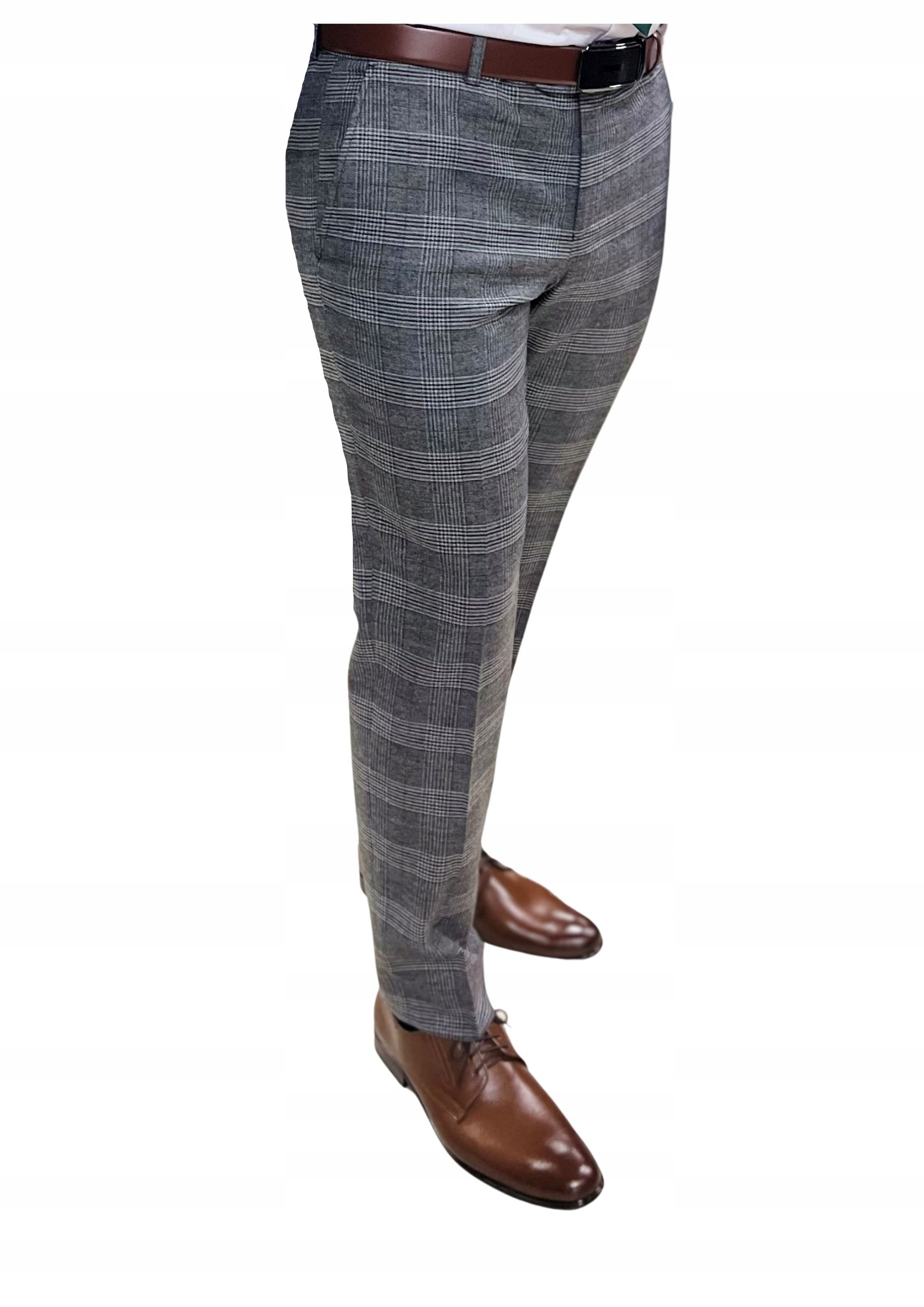 Чоловічий костюм у сіру клітинку з візерунком у сіру клітинку та зеленим, що робить його позачасовим. Приталений крій ідеально підкреслить достоїнства чоловічої фігури. Піджак застібається на два ґудзики, має відкриті лацкани, розрізну складку та два шви, класичний крій. Це робить його придатним для багатьох випадків. Кишені з клапаном і внутрішні кишені роблять його практичним. Штани, випрасувані в класичну складку, ідеально підтягнуть чоловічу фігуру.