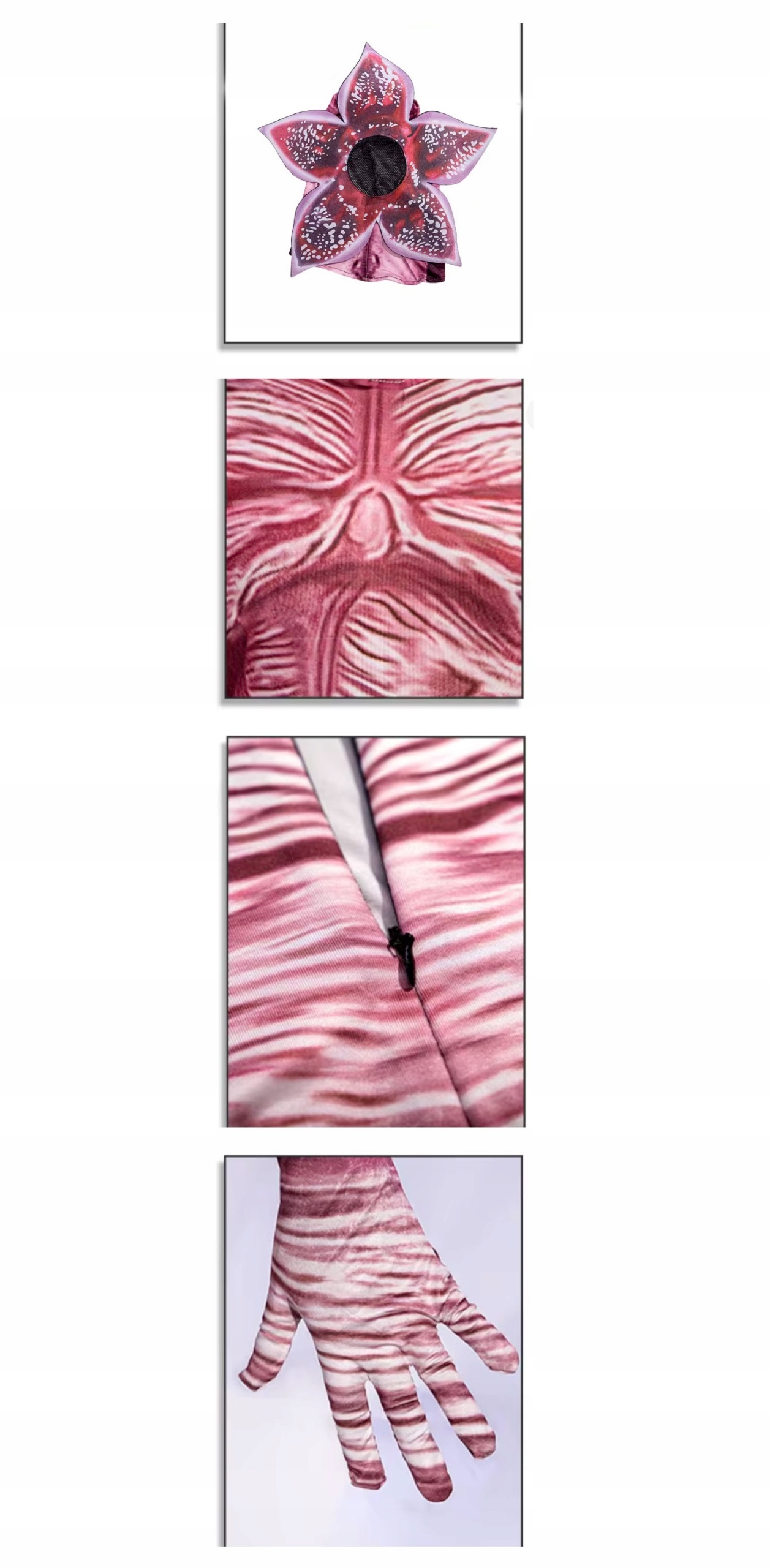 - Тривимірний ефект: принт, що імітує м’язи та сухожилля Демогоргона, робить костюм надзвичайно реалістичним.