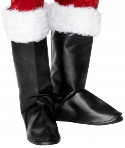 Для надягання чорного взуття, додатково обробленого зверху білим хутром, використовуються спеціальні бахіли у вигляді довгого жорсткого верху. Накладки виготовлені з чорної еко шкіри. Хутро широке, а щетина довга, як і личить костюму Діда Мороза.