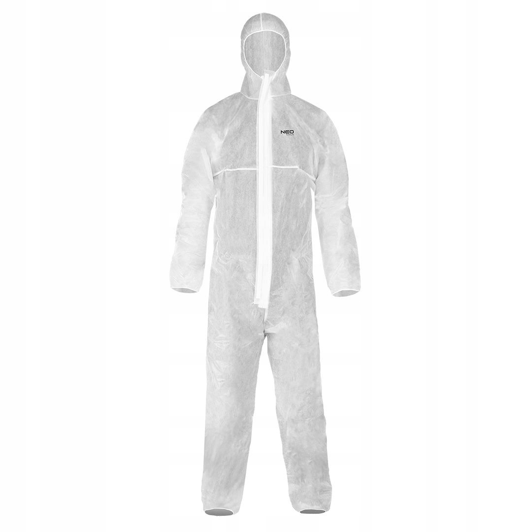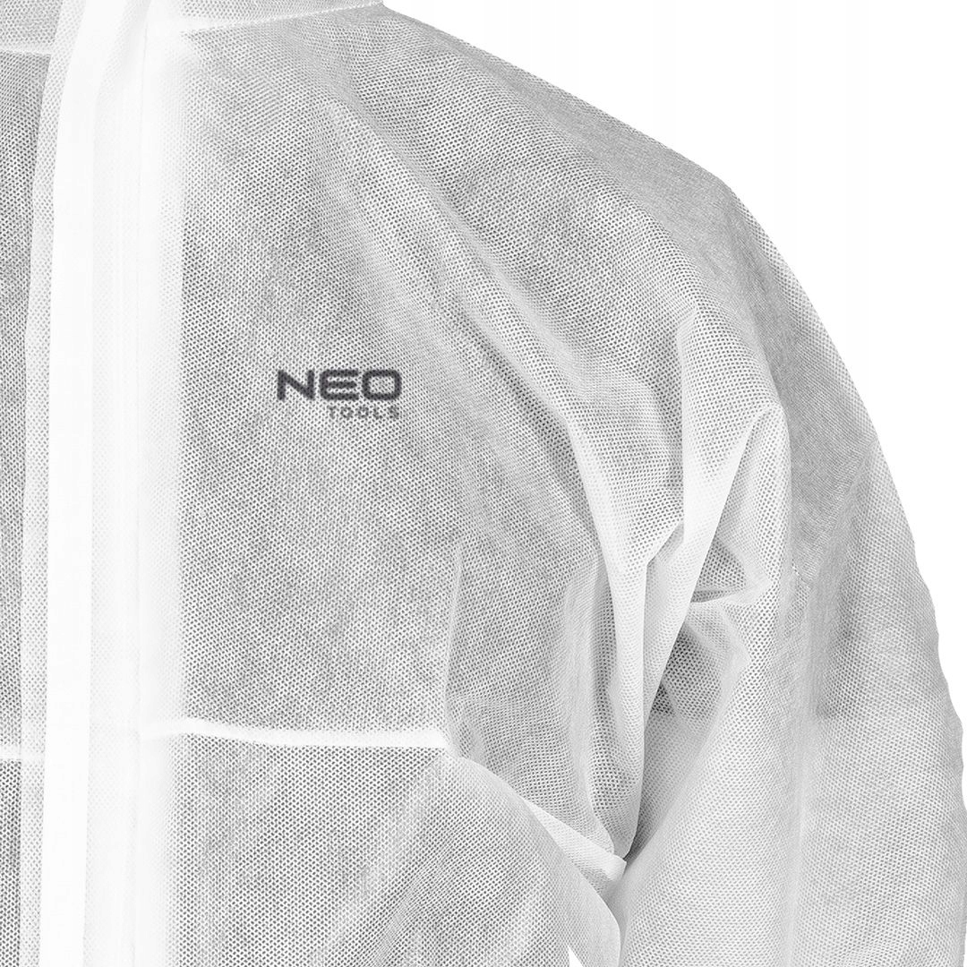 Одноразовий костюм для фарбування від торгової марки NEO. Міцний захисний одяг, рекомендований для різних видів діяльності, де особистий одяг може бути підданий впливу бруду. Костюм виготовлений з поліпропіленового нетканого полотна (флізелін) щільністю 50 г/м2. Він оснащений інтегрованим капюшоном, який щільно прилягає до обличчя завдяки еластичним стрічкам. Також є еластичні стрічки на талії та внизу рукавів і штанин, завдяки яким вони належним чином захищають одяг і шкіру під костюмом. Застібається на практичну нейлонову блискавку, яка додатково покрита клейкою складкою. На лицьовій стороні надрукований логотип, що свідчить про високу якість продукту. Костюми бренду NEO доступні в багатьох розмірах, щоб їх було легше підібрати на вашу фігуру.