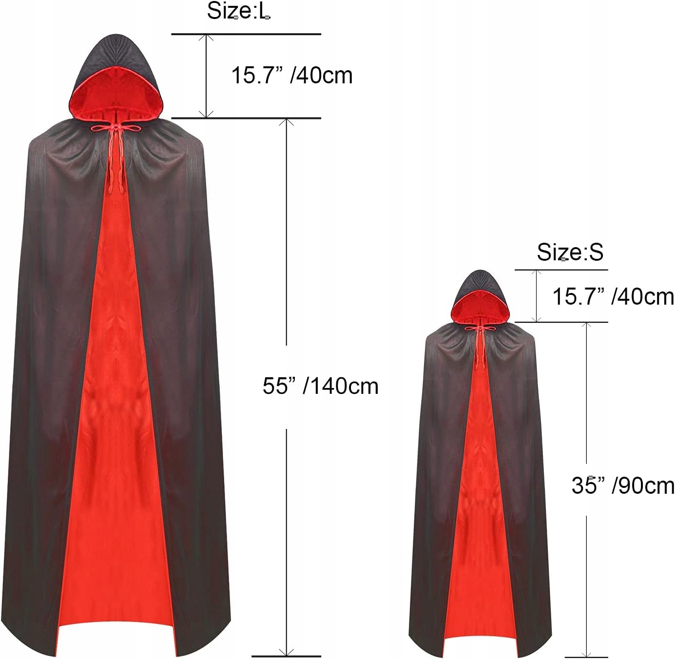 - Високоякісний поліестер: накидка вампіра виготовлена з високоякісного м’якого та легкого поліестеру. Його можна прати вручну та в машині, сушити на мотузці або в сушильній машині. Костюм-накидка виворітний, його можна носити як на чорну, так і на червону сторону, матеріал дуже м'який, тому його дуже зручно носити. Накидка легка, і вам сподобається, як вона хвилюється за вами під час ходьби.