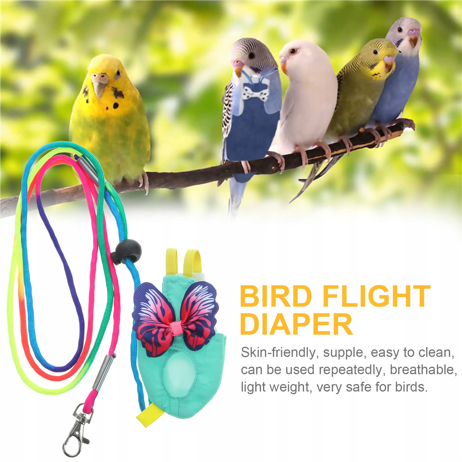 Шукаєте костюм для птахів? Цей костюм для птахів може задовольнити ваші потреби. Пелюшка для птахів, виготовлена з преміальної тканини та вишуканого шиття, може використовуватися протягом тривалого часу. М'яка та зручна текстура, що забезпечує приємне відчуття при носінні. Модний дизайн, ніжний колір, цей льотний костюм може показати миловидність ваших птахів.