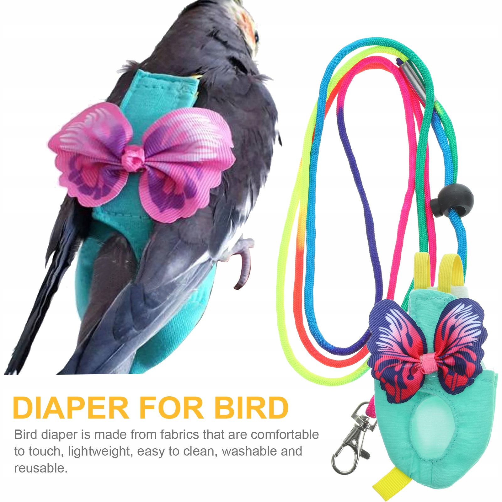 Практична пелюшка для птахів підходить для більшості домашніх птахів, її легко одягати або знімати, це хороший варіант, щоб ваші птахи були чистими.