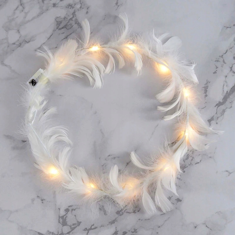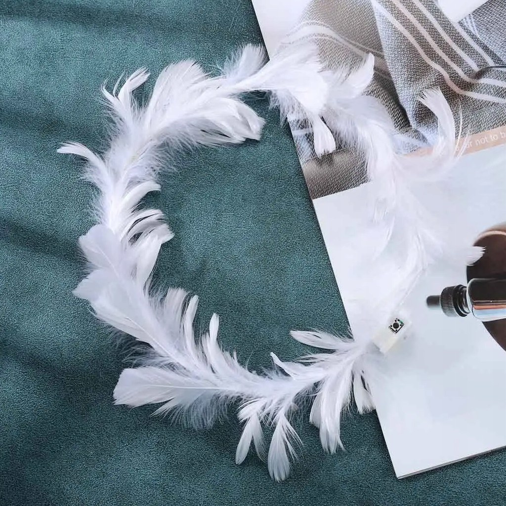 ХЕЙЛ, ВІНОК З БІЛОГО ПІР'Я, СВІТЛОДІОД, ЕЛЬФА НАРЯД ДЛЯ ВЕСІЛЛЯ, НАРЕЧЕНОЇ, ВЕЧІРКИ