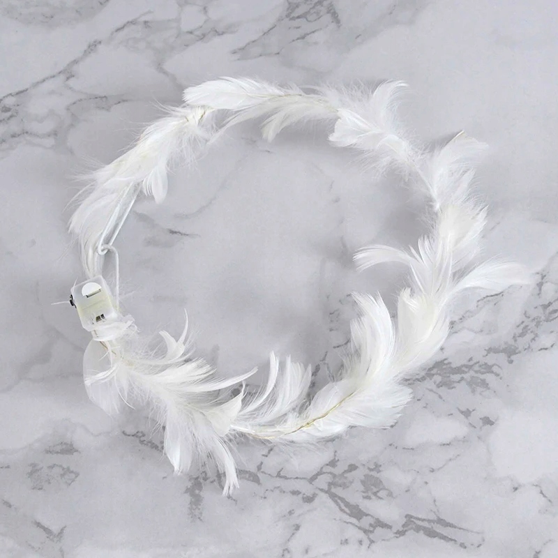 КОСТЮМ ЕЛЬФА З БІЛОГО ПІР'Я HALO ДЛЯ ВЕСІЛЛЯ ДЛЯ ПРИЧАСТЯ НАРЕЧЕНОЇ