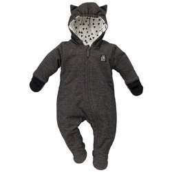 М'який дитячий комбінезон із колекції Happy Day від Pinokio. Утеплений спортивний комбінезон, повністю застібається на блискавку, легко одягнути малюка. Всередині підкладка кольору екрю з чорними трикутниками, рукави оброблені лапками для захисту маленьких ручок від холоду. На капюшоні .котячі вушка.Склад матеріалу: верх 100% бавовна, підкладка 95 5 бавовна 5% еластан. Польський продукт.