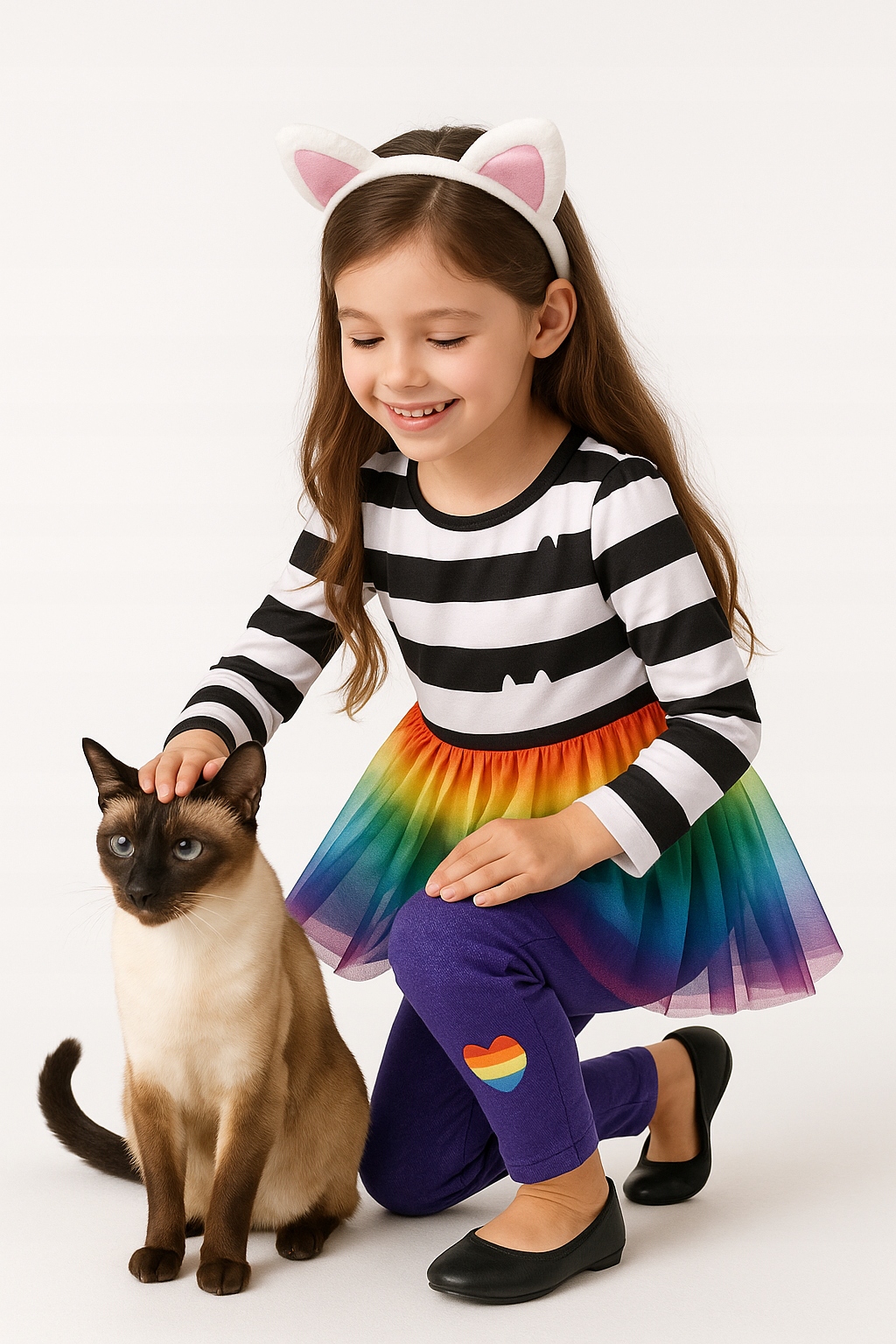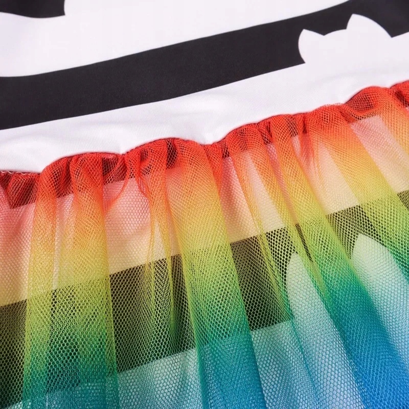 - Сукня з тюлю – білі та чорні смужки з принти у формі кішок, м’які, легкі та гарно скомпоновані, надають кожному руху дівчачого шарму.
