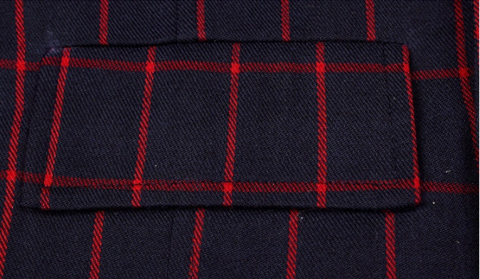 Піджак має на підкладці такі ж кольори, куртка застібається на гудзик. На ньому нашита аплікація у вигляді сови.