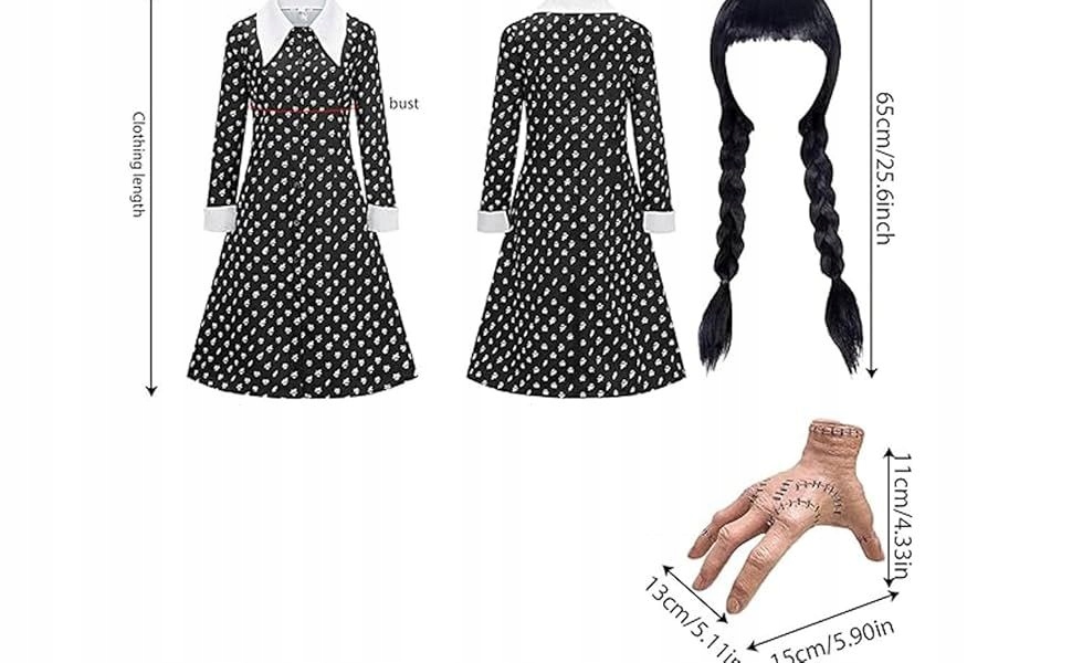 Костюм костюма вбрання в середу Addams Peruka Hand DZ XS/S 6TZ