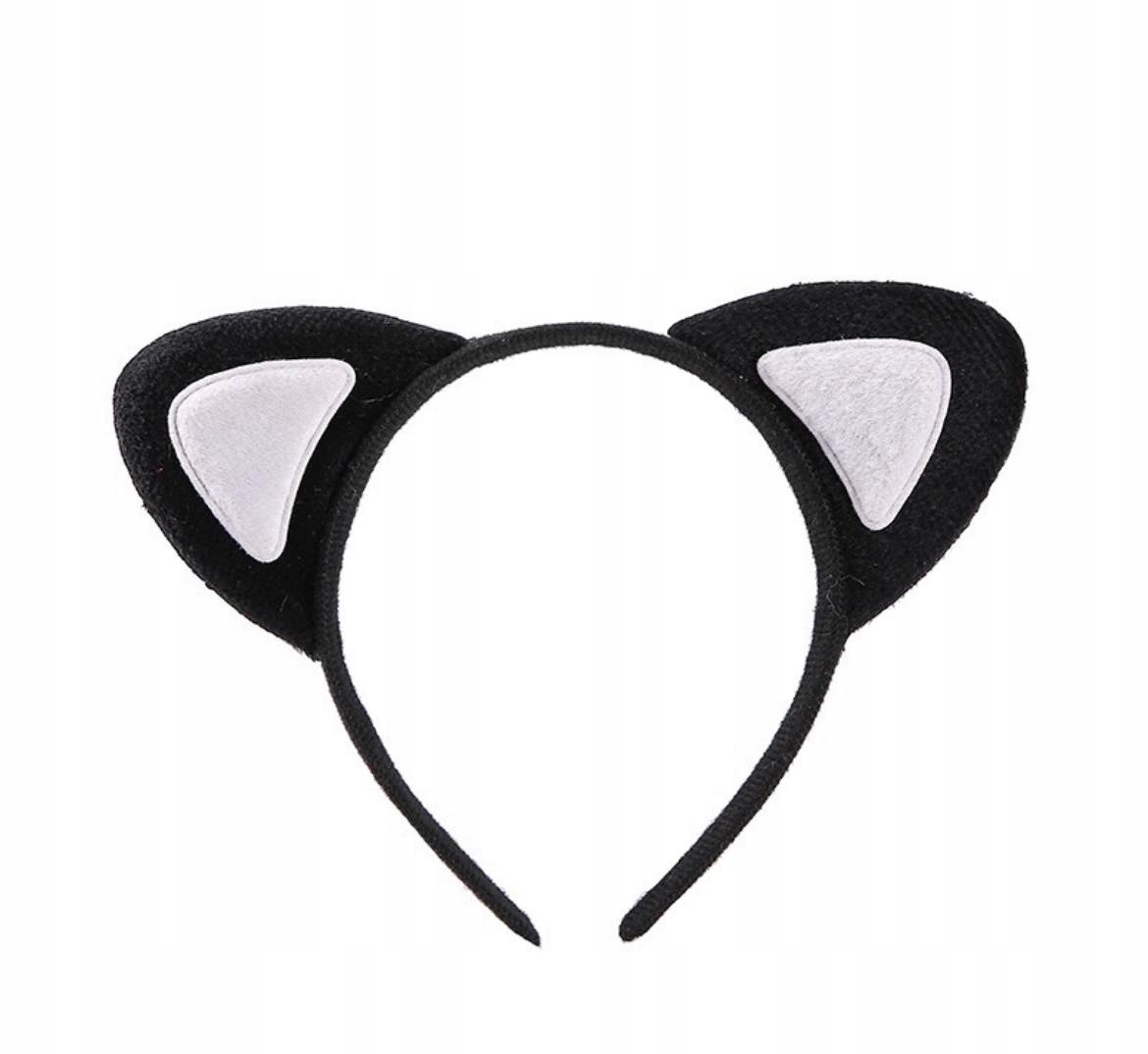 Пов’язка з котячими вушкамиСимпатична, зручна пов’язка з чорними фетровими вушками з білими деталями. Він ідеально сидить на голові, а його м'який матеріал не викликає дискомфорту навіть після тривалого носіння.