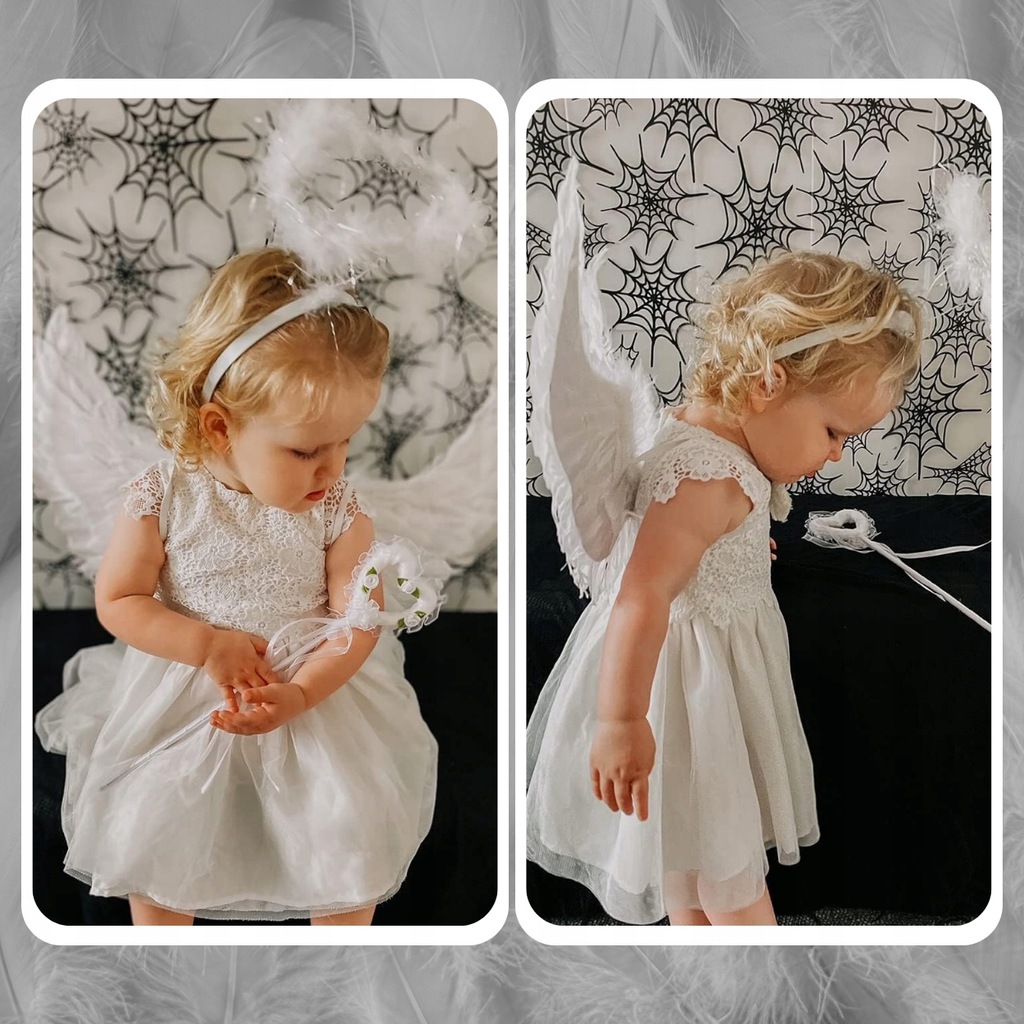➡️ ЗОВНІШНІСТЬ АНГЕЛА - білі крильця, вкриті ніжним пір'ям, і німб з пуху створюють ефект легкості та елегантності. Завдяки їм дитина виглядає чарівно та неповторно на кожному святі.