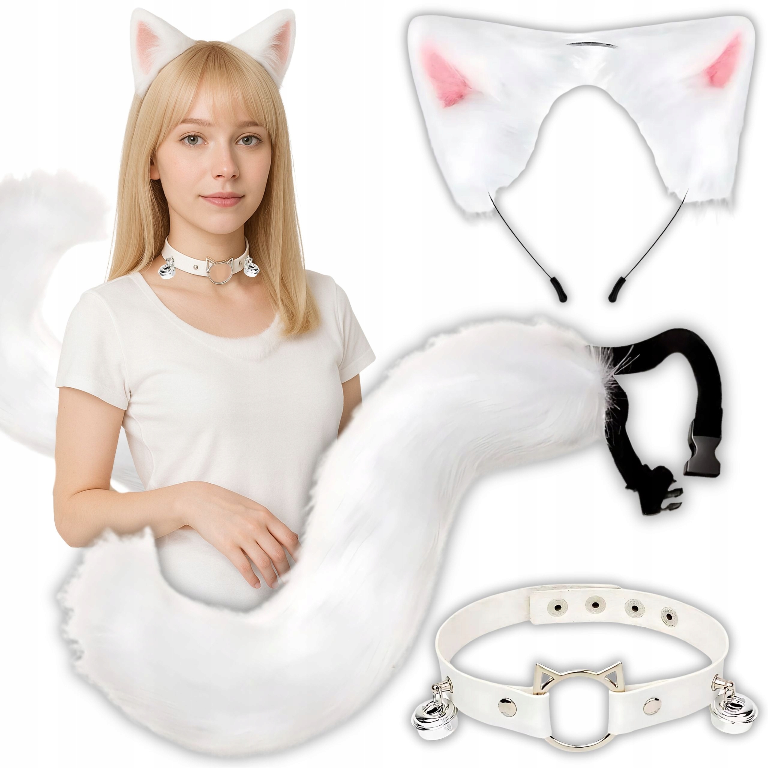 🐱 Чарівний дизайн – котячі вушка, хвіст і кольє білого кольору додадуть трохи веселощів і легкості будь-якому вбранню.