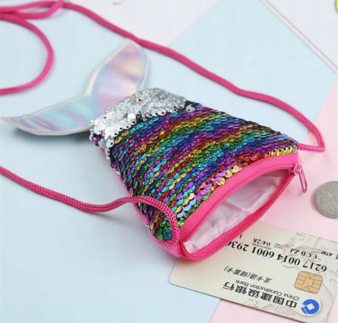 - Багатокольоровий гаманець з блискітками з хвостом русалки.