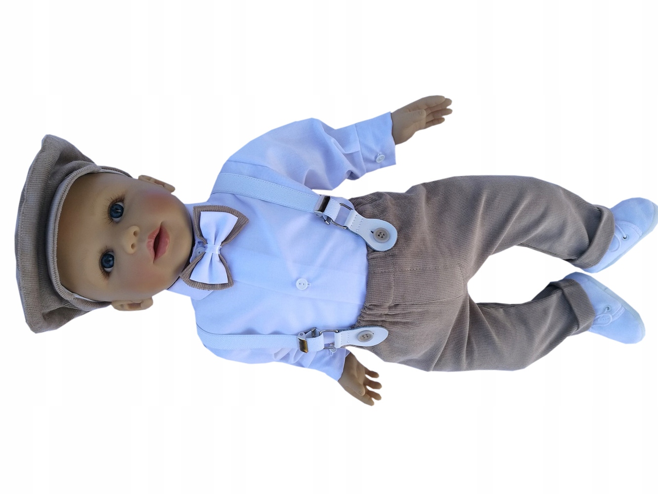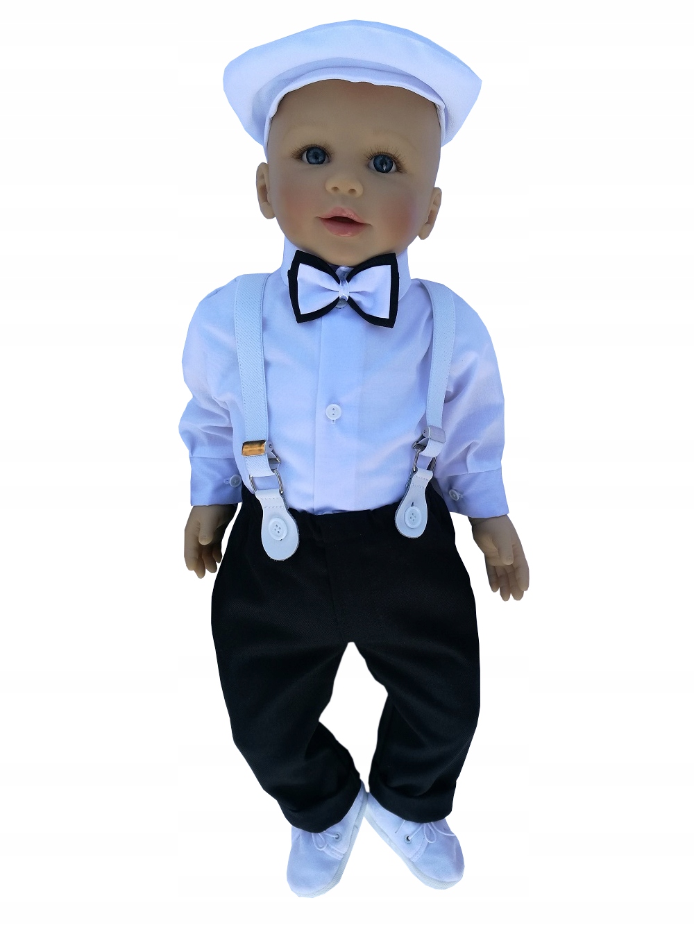 БІЛІ ШТАНИ З КОСТЮМНОЇ ТКАНИНИ, ЗРУЧНІ Гумка вшита в пояс.БІЛА КАПКА, БІТКА b>ЗАДНЯ ЧАСТИНА КАПЕЛЮХА ВІДЛИВНА, ОБШИТАНА БІЛОЮ ПІДДІБКОЮ.СОРОЧКА У ВИГЛЯДІ БОДИБІЛА З ДОВГИМ РУКАВОМ НА ГУДСИКАХ. СИНИЙ КОМПЛЕКТ З ГОДИННИКОМ, РОЗТЯЖНИЙ, З ГУМИ. ЗАВДЯКИ РЕГУЛЮВАННЮ МОЖНА РЕГУЛЮВАТИ ДОВЖИНУ. ПІДСТАВКИ МОЖНА ВИКОРИСТОВУВАТИ ДЛЯ ІНШИХ ШТАНІК З ГАРДЕРОБУ ДИТИНИ.СИНЬО-БІЛА КРАВАТКА ЗІ СТРЕЧКОЮ.